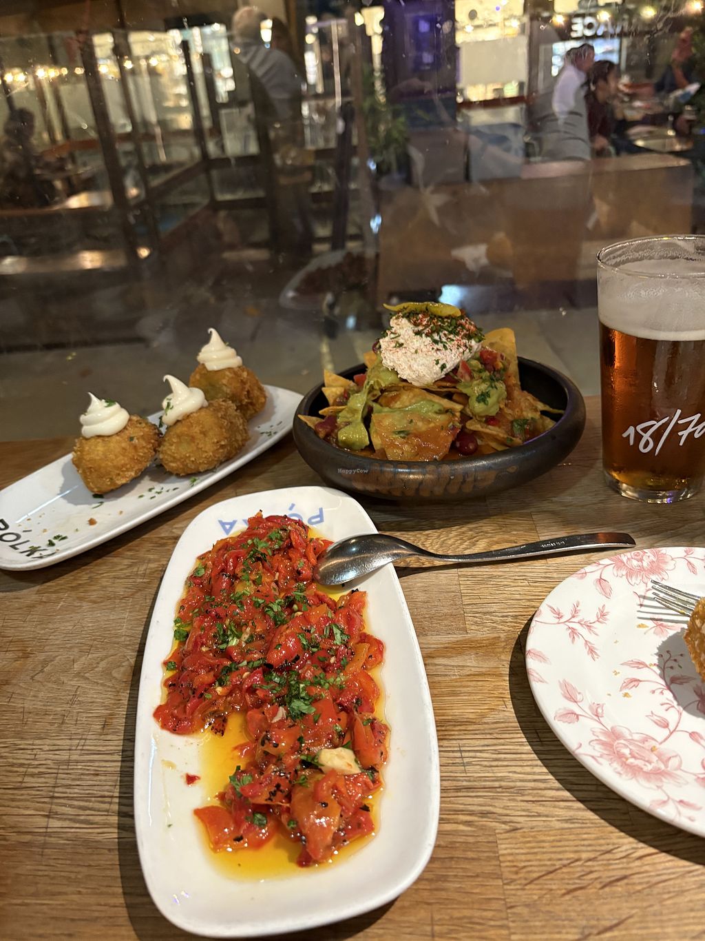 Lots of vegetarian options including Nachos, pumpkin croquets, garlic roasted peppers etc