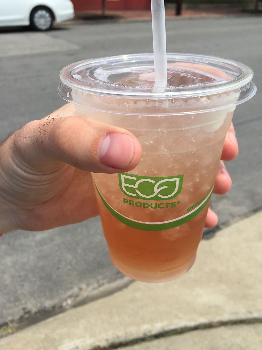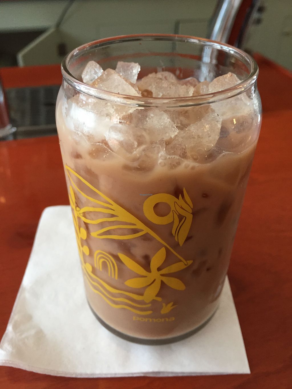 Pomona specializes in unique and experimental homemade beverages. I got some AMAZING horchata (with homemade rice milk and house spice blend) and my boyfriend got a cherry, maple, mustard “shrub”—which a sweet and sour soda. They soak the fruit in vinegar overnight, then strain it and mix a few tablespoons of the liquid into carbonated water. The result is so unique and delicious. All the other drinks people were ordering looked great too, and almost all of them are vegan or can be made vegan. We also got their “bread and spreads.” A lot of the spreads weren’t vegan but we got all the ones that were: beet hummus, serrano pepper jam, mushroom duxelles, and plum jam. All were delicious (especially the beet hummus and serrano jam) and served on locally made bread grilled with olive oil. The vibe in the place can’t be beat—it’s filled with plants and if you sit at the bar you can watch the baristas experiment with making new drinks.