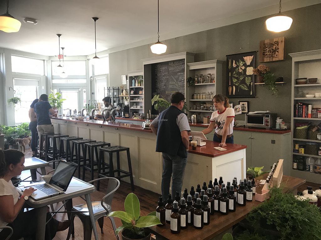 Serves fish, vegan options available. Coffee shop that sells plants and has a food menu of mostly local foods. Has an extensive drink menu of which all are either already vegan or can be made vegan. All food is vegetarian apart from anchovies. Offers a bean chili with toast and the golden milk is made with house-made cashew milk. Offers almond milk, house made cashew milk and coconut milk as milk alternatives. Reported closed August 2022.
