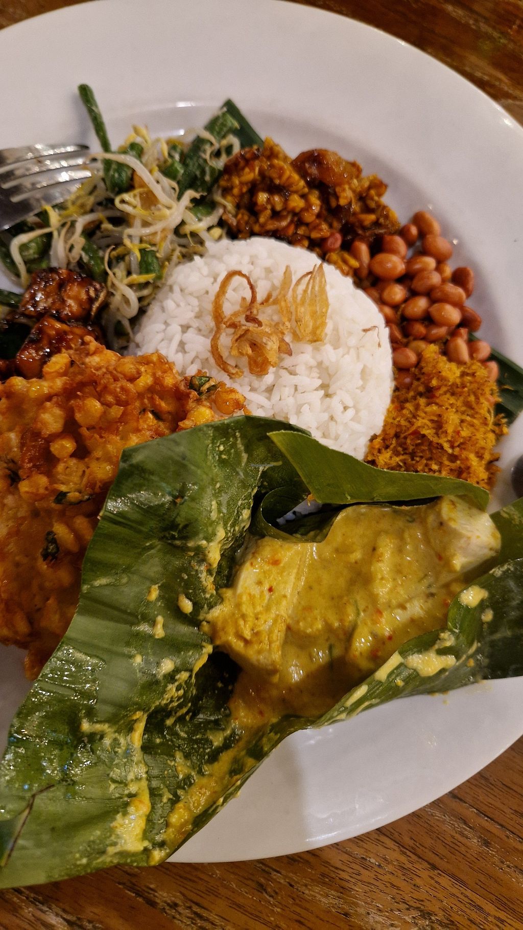 Went for dinner here twice. They have a few vegan options on the menu, just ask the waiter. They offer tempeh and tofu instead of meat. The curry with vegetable was really tasty and the nasi campur was one of the best.
