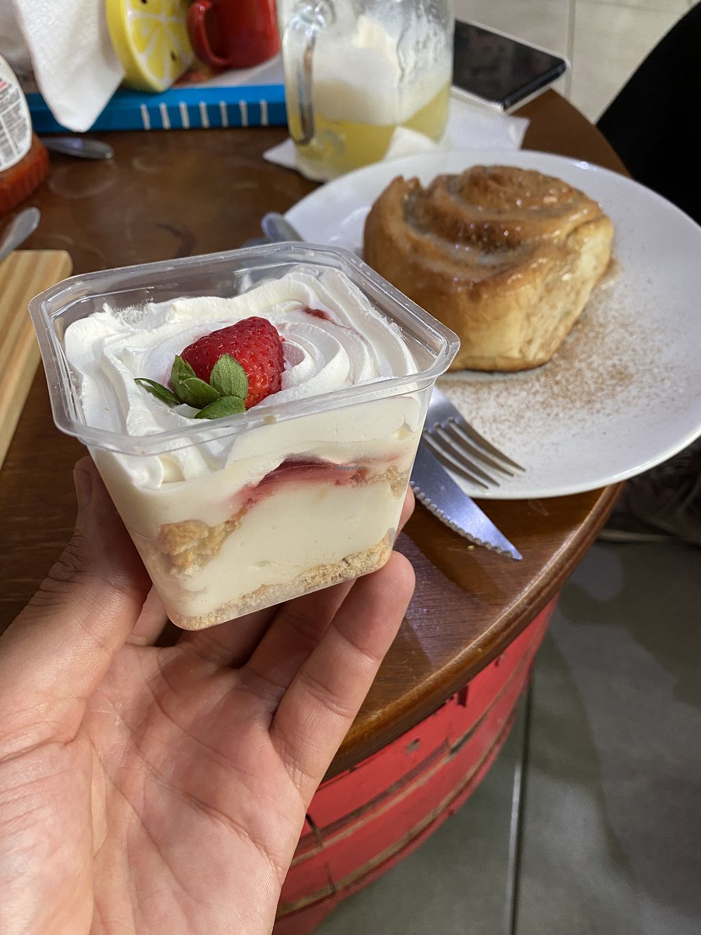 Cinnamon roll, Strawberry cream crumble