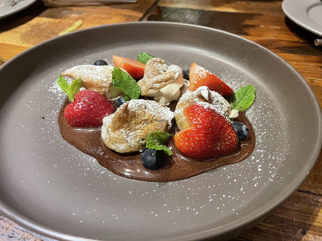 - Profiteroles - the pastry here was a bit too crispy and crunchy rather than soft as expected, although the cream was nice and I liked the unique presentation.