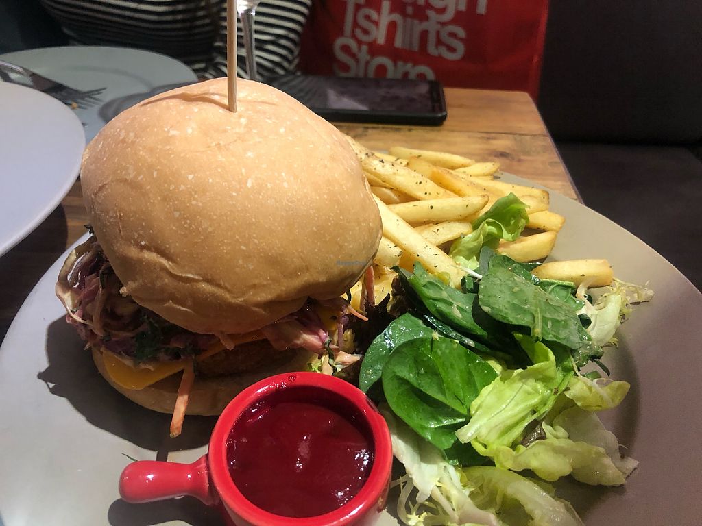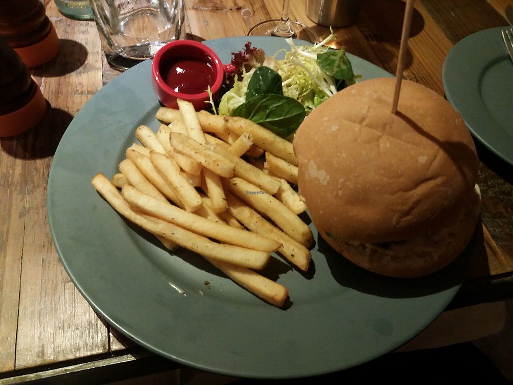 Nice place with really good burgers and mock meat. Def recommend the vegan fish and chips which tastes f’n authentic!