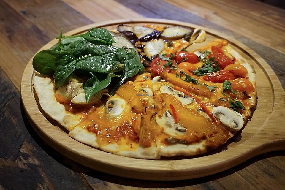 Such an amazing concept! Buffet savoury and sweet pizza, all vegan! So many different varieties of toppings, including: sweetcorn, aubergine, peppers, mushroom, spinach, tomatoes, chillies, vegan sausage, chicken, beef and salami. The soya based cheeses were creamy and moorish, very happy with the variety and endless servings until you say you're done. The sweet includes bananas, chocolate, strawberries, lime and coconut. The staff were all super friendly, accomodating and speedy!