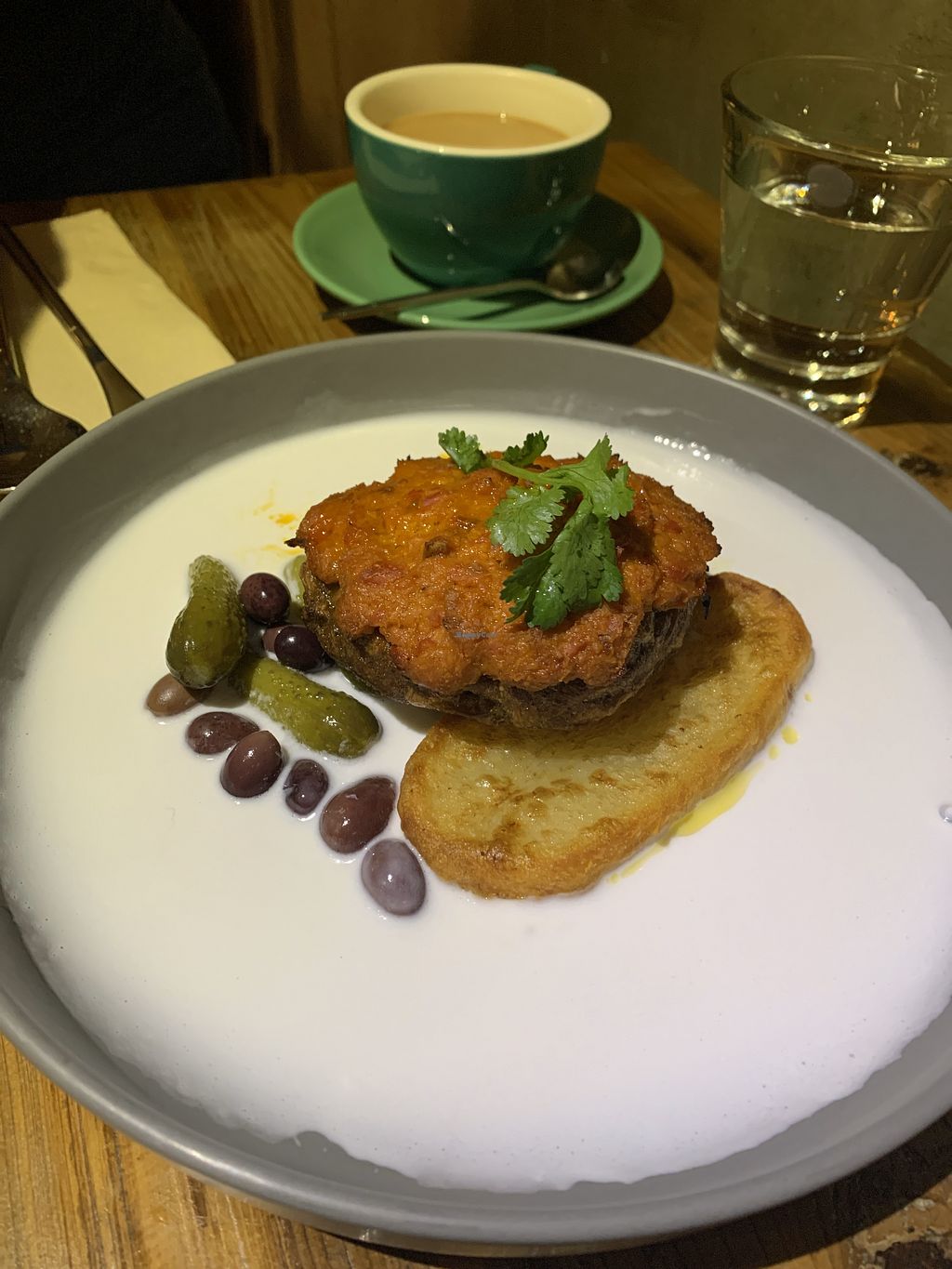 - Smoked Vegan Tuna Salad: my friend was really disappointed with the portion of this, especially because it was a similar price range to the other 2 dishes (128 vs 138/148), the expectation was that it would be more than a "starter" size. he said it was "bland", but neither of us tried it (since we didn't want to take away from his small portion...). he ended up eating the sides off our 2 plates so we didn't want to make a fuss about it...