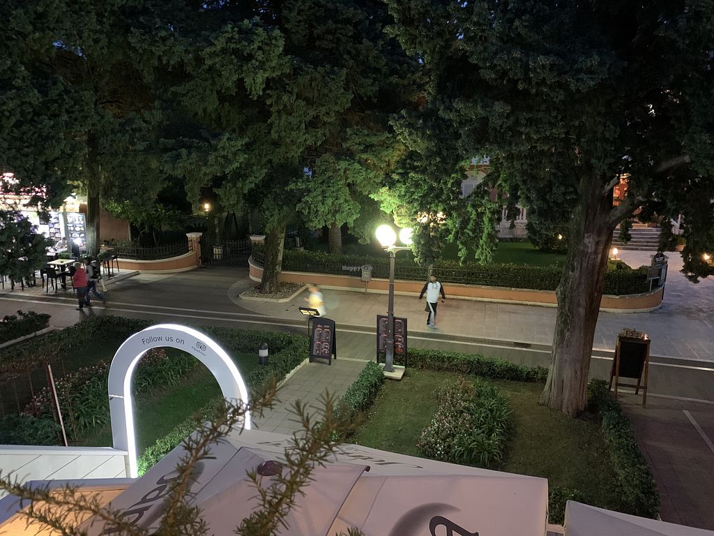 The location is lovely. Catch the light and there are mountain backdrops as you sit on the roof terrace. Lovely service and a selection of food which is our can be adapted vegan. I h had the tofu and mushroom skewers on cous cous with a good sized side salad. Be aware though, it’s an Asian fusion style, so although you think you’re getting Mediterranean, it’s not! The “vegetable pasta” was stir fried noodles in a soy sauce based sauce (vegan btw). Having said that it was lovely to get something a bit different from the usual standard same offerings.