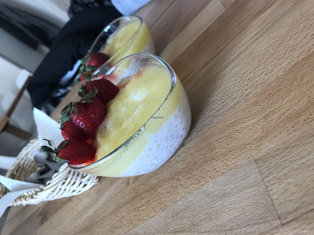 Deser z tapioką, musem ananasowym i truskawkami 👍🏻