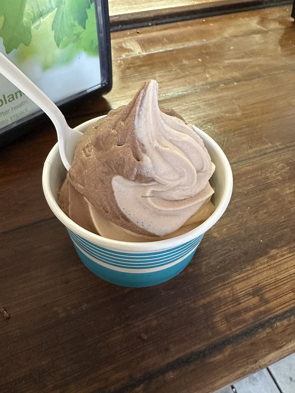 Vegan chocolate caramel soft serve - this flavor and vanilla as of 07/…