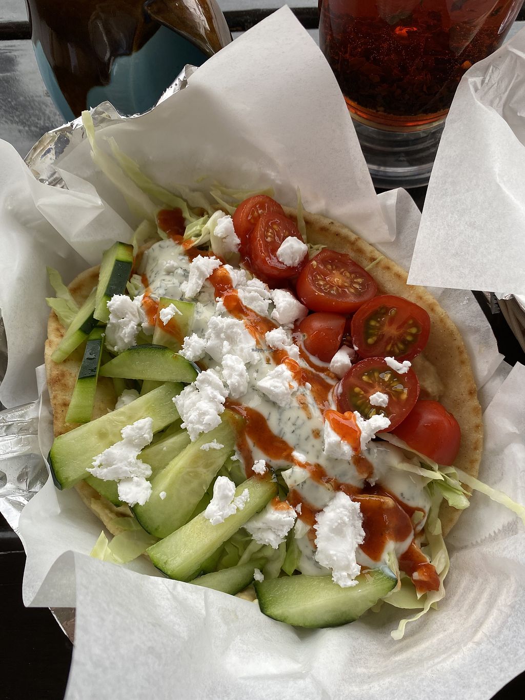 My partner and I tried the gyro and the arti-fish tacos both were delicious!