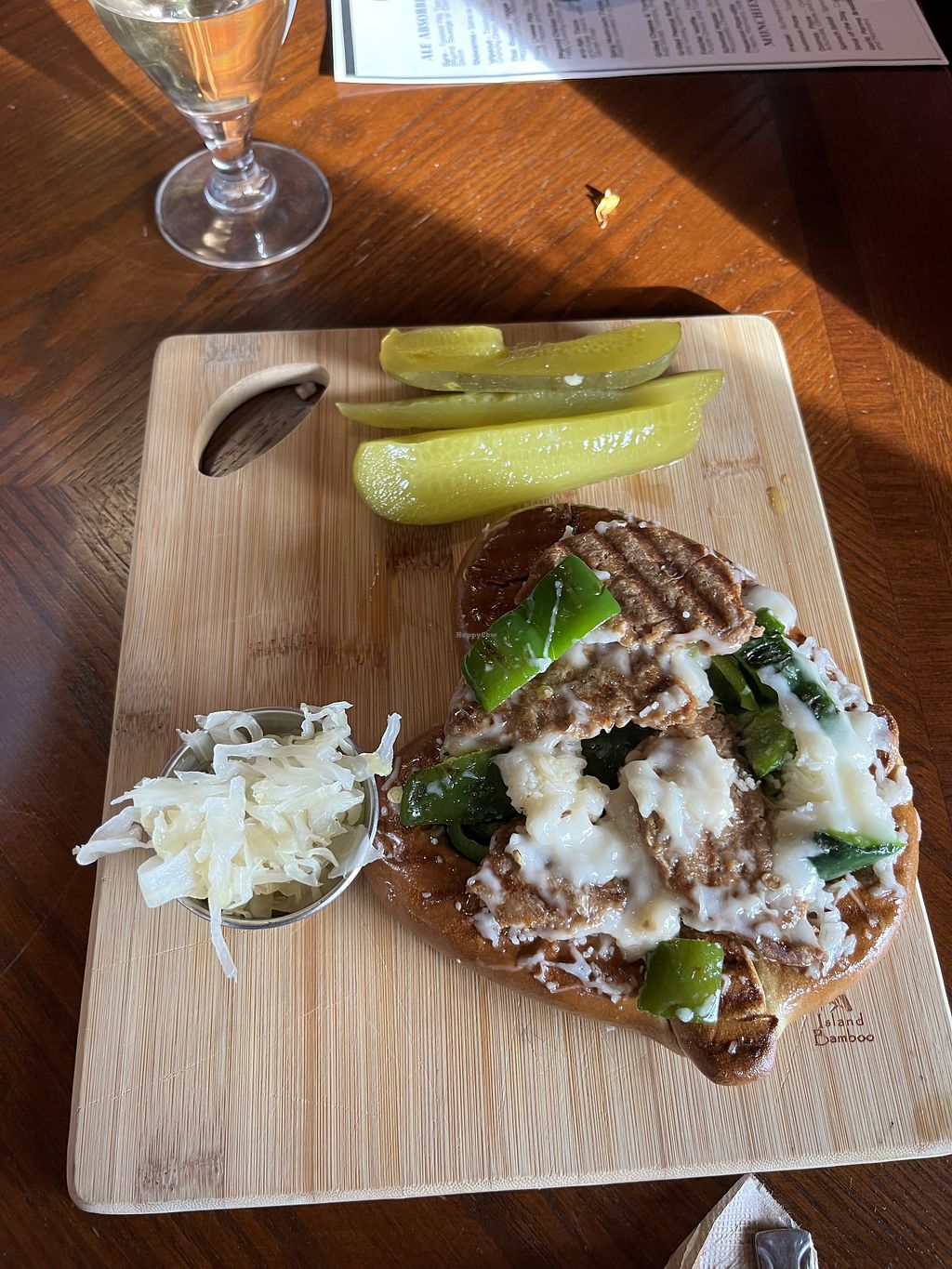 We loved the aesthetic and yummy (all vegan) food at this little brewery. The philly cheese steak pita was amazing. Also you'll want to get a pretzel for sure. The owner and staff were also super nice and chill.