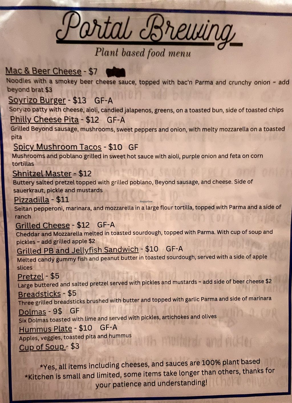 Portal Brewing is by far and away some of the best food I’ve ever had. So many times, as vegan or vegetarian, you feel like you’re sacrificing when you go out… Portal goes out of the way to make you know that vegan and vegetarian food is and always has been delicious! The beer is fantastic, service is amazing, but most of all flavor flavor flavor! I couldn’t recommend it more!