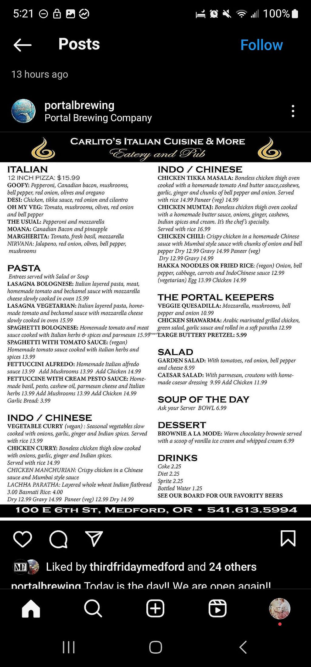 Outstanding! I can't wait to come back. We don't live in Medford, and had to make an unexpected stop here because of car troubles. Coming to Portal was our consolation prize, and I had no idea it would be so amazing! The spicy mushroom tacos were outstanding, and my husband devoured his chicken tacos. He had the breadsticks as an appetizer, and I had the pretzel- both were incredible. As for the beer, ohhh my! So hard to choose, and each one we tried was delicious. Went for a taste of flight because it too hard to decide on one. The server was super thoughtful. Portal is for sure going to be a fixture when we come through Oregon. I will go out of my way to come back here again and again!