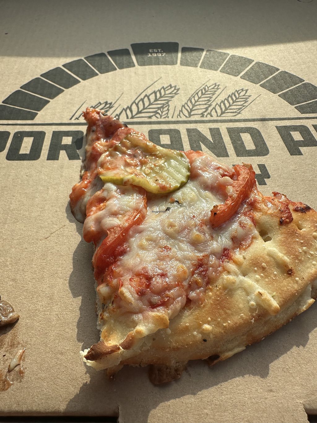 The pizza I ate from Portland Pie Company was quite good; there is, however, only one vegan cheese option, but a vegan can order many of the yummy veggie toppings.