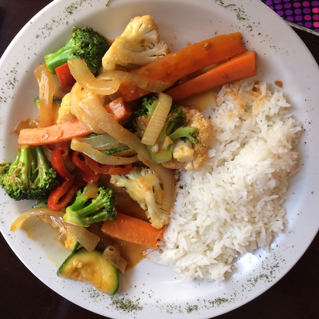 the best thing about this place is the AC inside. The food was mediocre- I ordered the $11 Coconut curry and got warm raw vegetables smothered in a sugar sauce and white rice. My husband got a vegetarian Casado and they left off the fried plantains. There was no one else in the restaurant but us, and we can see why. We chose to go here because Rustico had a line out of the door (there's a huge event in town today). We definitely won't be going back.
