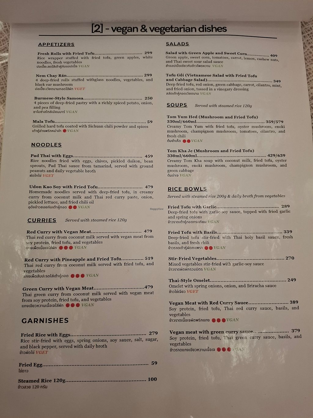 Vegan and Vegetarian menu easily coded