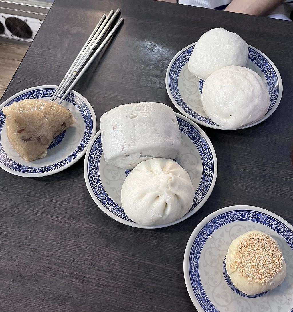 Sells a large variety of buns (baked and steamed), dumplings, sticky rice, and some soups too. Totally vegan and affordable. Magnificent black sesame bun.
