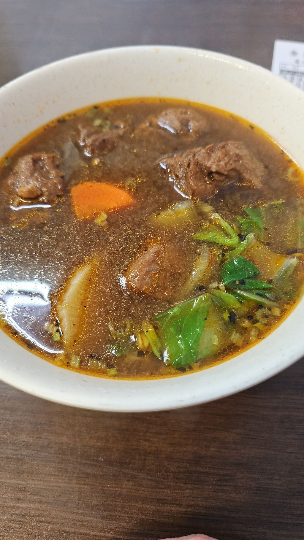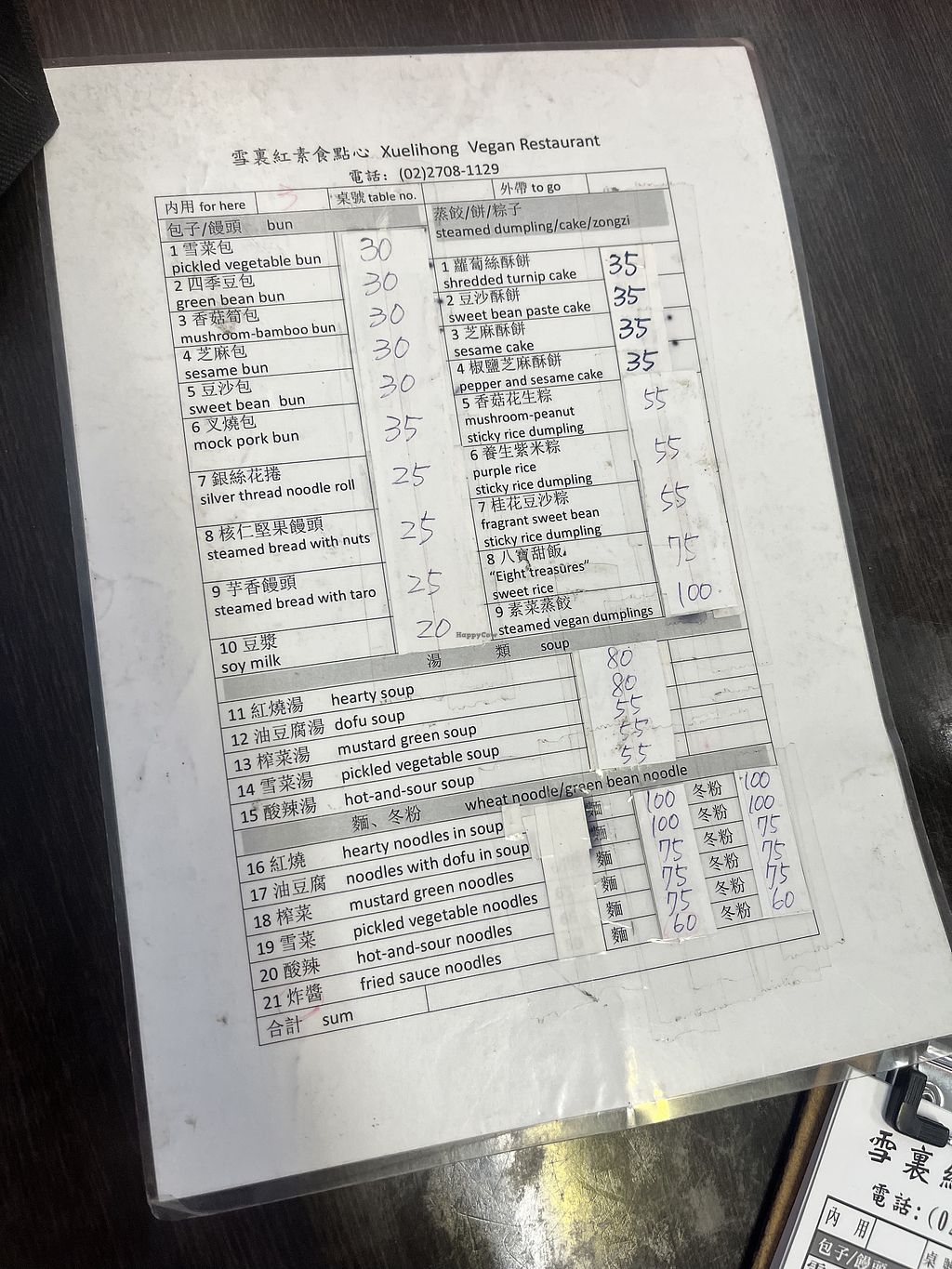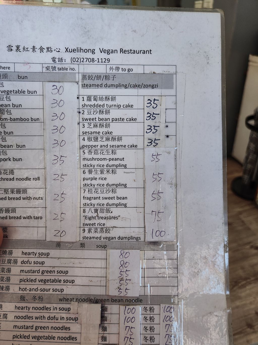 Tofu soup, mustard green soup, pepper sesame cake, mock pork bun and g…