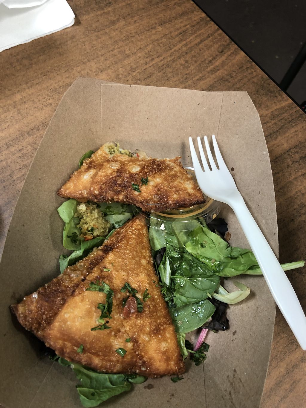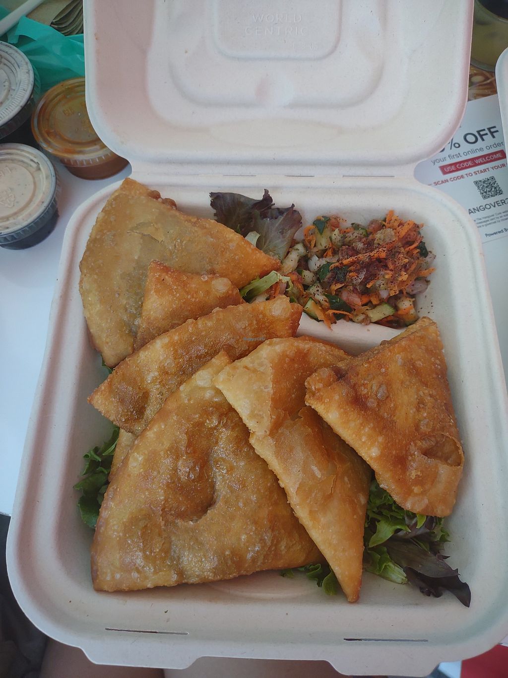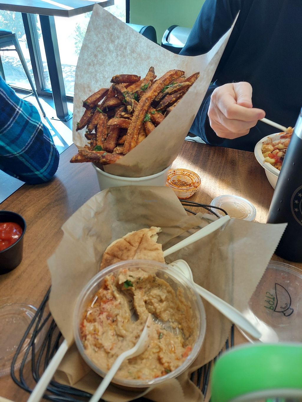 I love POTs! I've been to old location as well as this new location. Every time I come back to town to visit I always come here ! It's definitely in my top 3 or 5 vegan restaurants in town!!! Woman owned and I love supporting this place ! We walked there from our hotel room. I like that new location is more central then before. There's a couple tables you can eat at inside but I think it's more designed for to-go. The flavors are so amazing, everything from the sauces to literally everything. You can't go wrong! I always get the cauliflower schwarma and the samosas!!! The flavor they put on the fries is so good I should ask what it is! Never had that before anywhere else! I can't say enough good stuff about this place! Also you get a huge bucket of fries for the price! The portions are great!