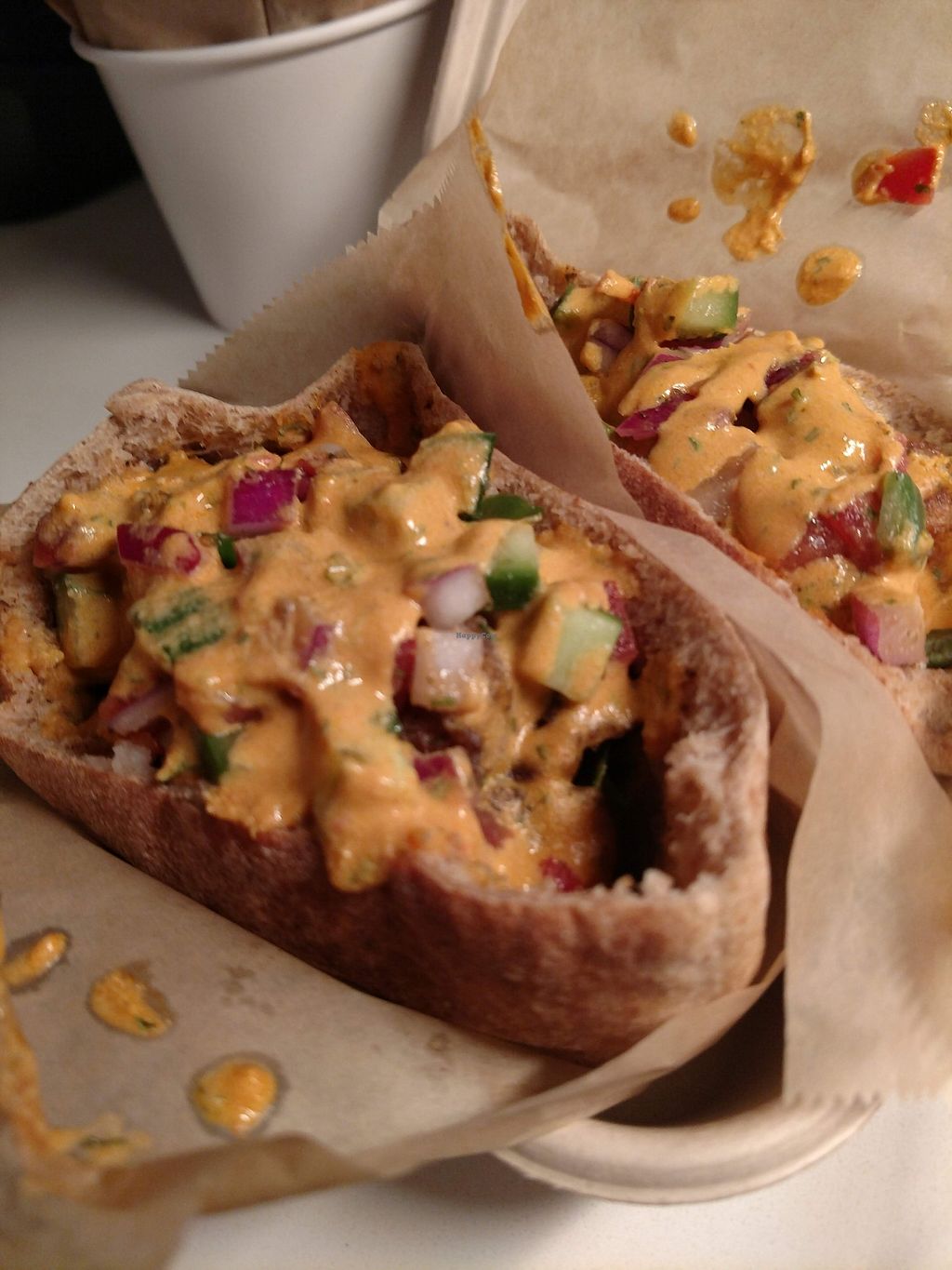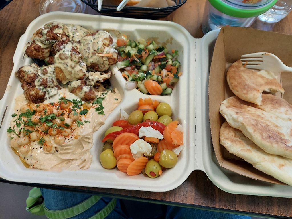 My first foray into Egyptian food… and it was all vegan! I had the cauliflower shawarma and it was delicious. Just enough for lunch! The staff was friendly and helpful. Recommended!