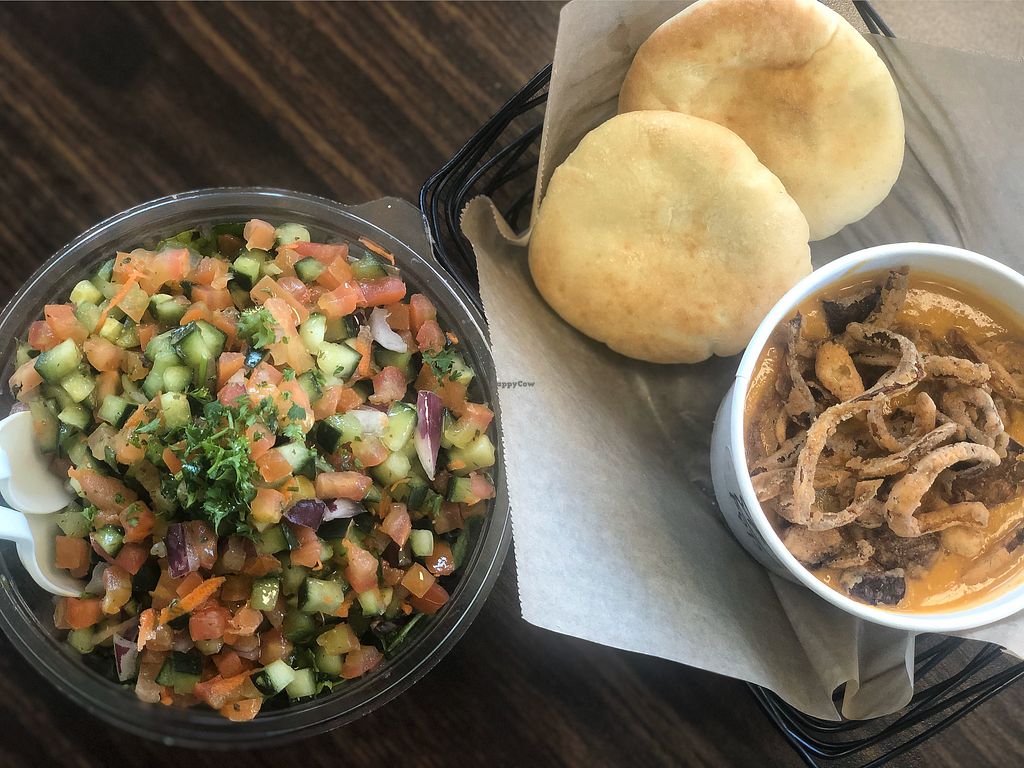 Three words: vegan Egyptian food. Seriously, large portions of fresh and delicious food. This place is not to be missed! We got the Just a Platter and Taamia Platter, both equally delicious. We also got a side of Egyptian fries which was really a large brown bag of them. We had fries for days! 😜 The Apricot Extravaganza drink was yummy too!