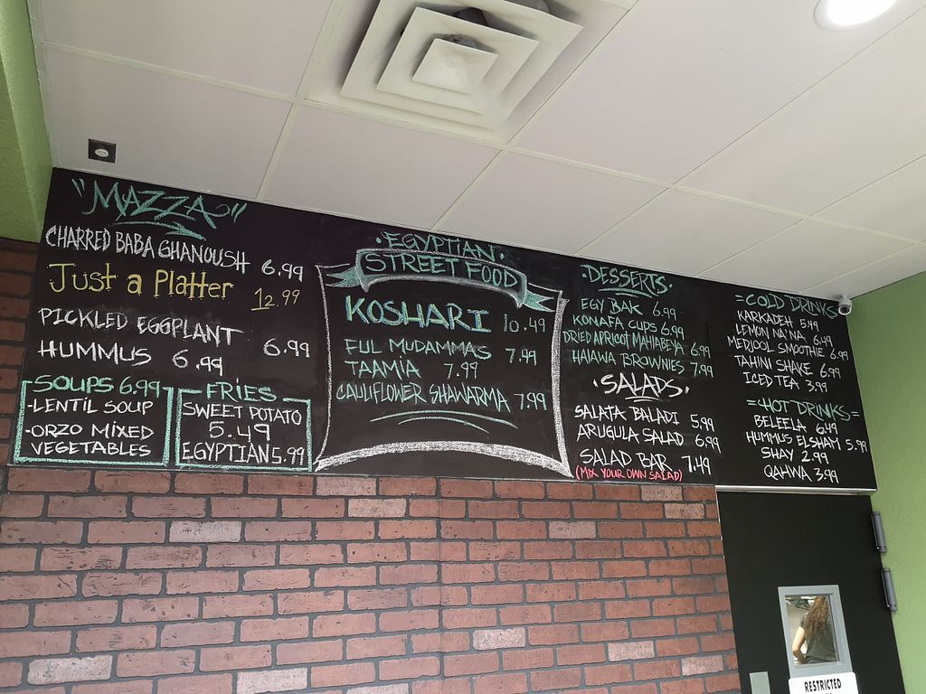 Egyptian restaurant offering soups, salads, falafel, cauliflower shawarma, desserts, and more. Fully vegan since Oct 2018. Black-owned. Relocated from 1745 S Rainbow Blvd. Reported closed September 2022.