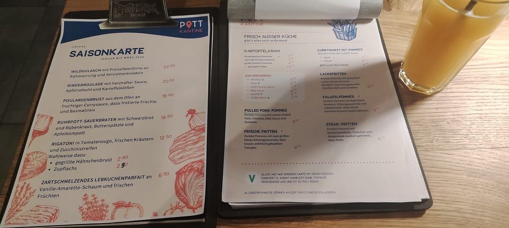 Ich glaube, ich kenne keinen Imbiss, der eine so reichhaltige Auswahl an veganen Optionen bietet. Burger, Schnitzel, Currywurst, Falafel mit Pommes und auch Burger stehen zur Auswahl. Alles wird selbst zubereitet und ist entsprechend frisch gemacht. Klasse! Und man kann auch sehr gemütlich im Innenraum sitzen, also nicht nur Pommesbude.