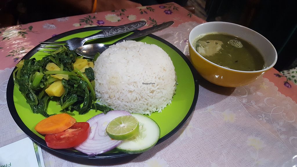 Little local, family-owned vegetarian restaurant with a lake view. Serves healthy organic food with many vegan options such as yoga breakfast, veg momos, chow mein, fruit salad, soups and many teas. Healing herbs available too. Reported closed February 2024.