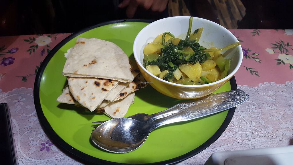I ordered the buckwheat roti with curry for 150 rupees and it was delicious and a decent size. The older lady that works there tried to sell me bracelets even after I told her many times that I am not interested because I spent a lot of money already that day for gear and permits. She kept insisting until I gave in and purchased one. I found that a bit annoying but she was sweet at the same time. If that wouldn't have happened, I would give 5 stars