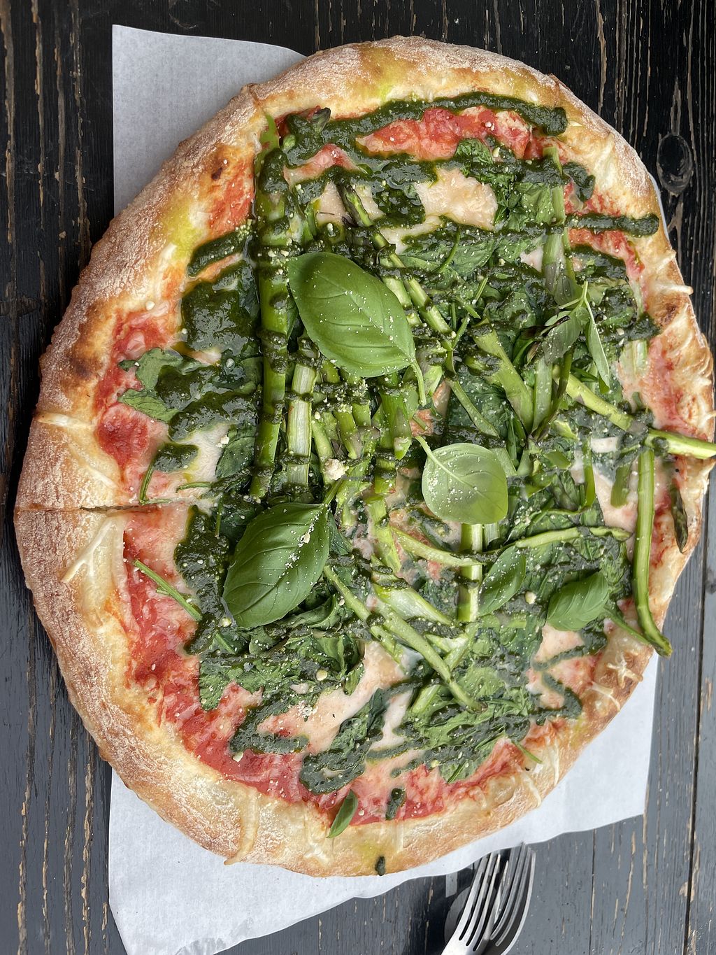 We tried the asparagus pizza, and it was so unique — absolutely delicious! The flavor combination really stood out and felt fresh and creative. The chips, on the other hand, were just regular chips, so I’d skip those next time. But the pizza alone makes this place worth the visit!