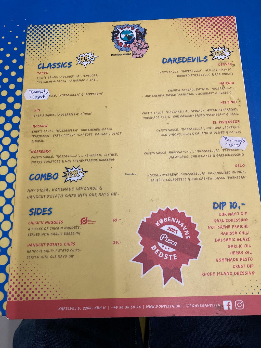 i was happy to find this all vegan pizzeria for dinner in copenhagen. they have a small range of different pizzas including some without tomato sauce - i appreciate this a lot. i enjoyed the oslo pizza even though it was a little expensive (maybe not so expensive for copenhagen, i don't know).