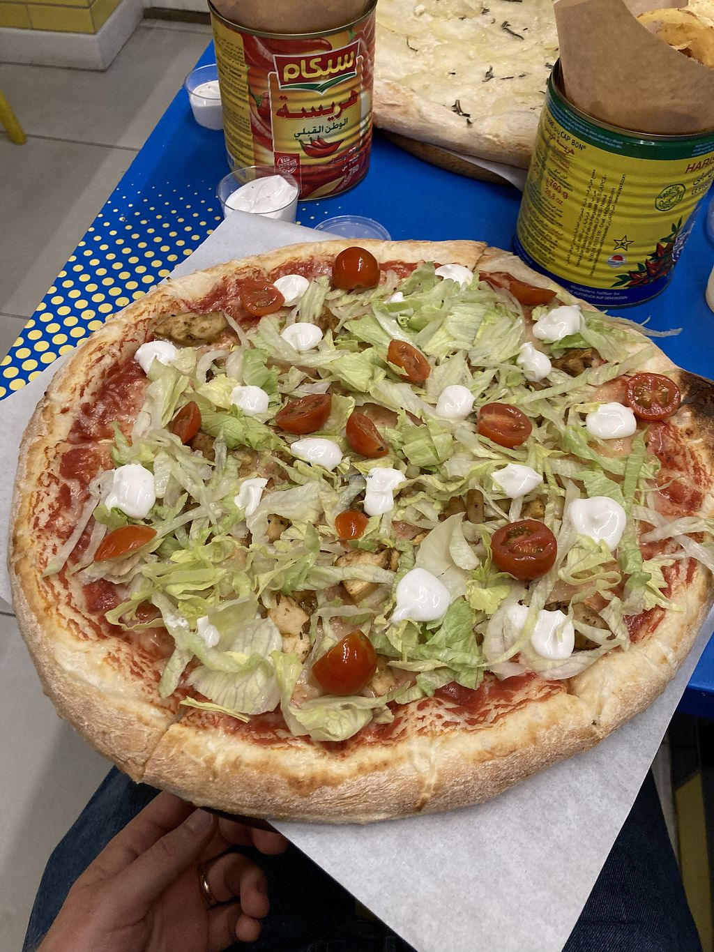 Sehr kleiner Laden, eher wie ein Falafelstand, aber mit Pizza. Sehr feiner Pizza! Sehr freundliches, authentisches Personal. Kann ich uneingeschränkt empfehlen.