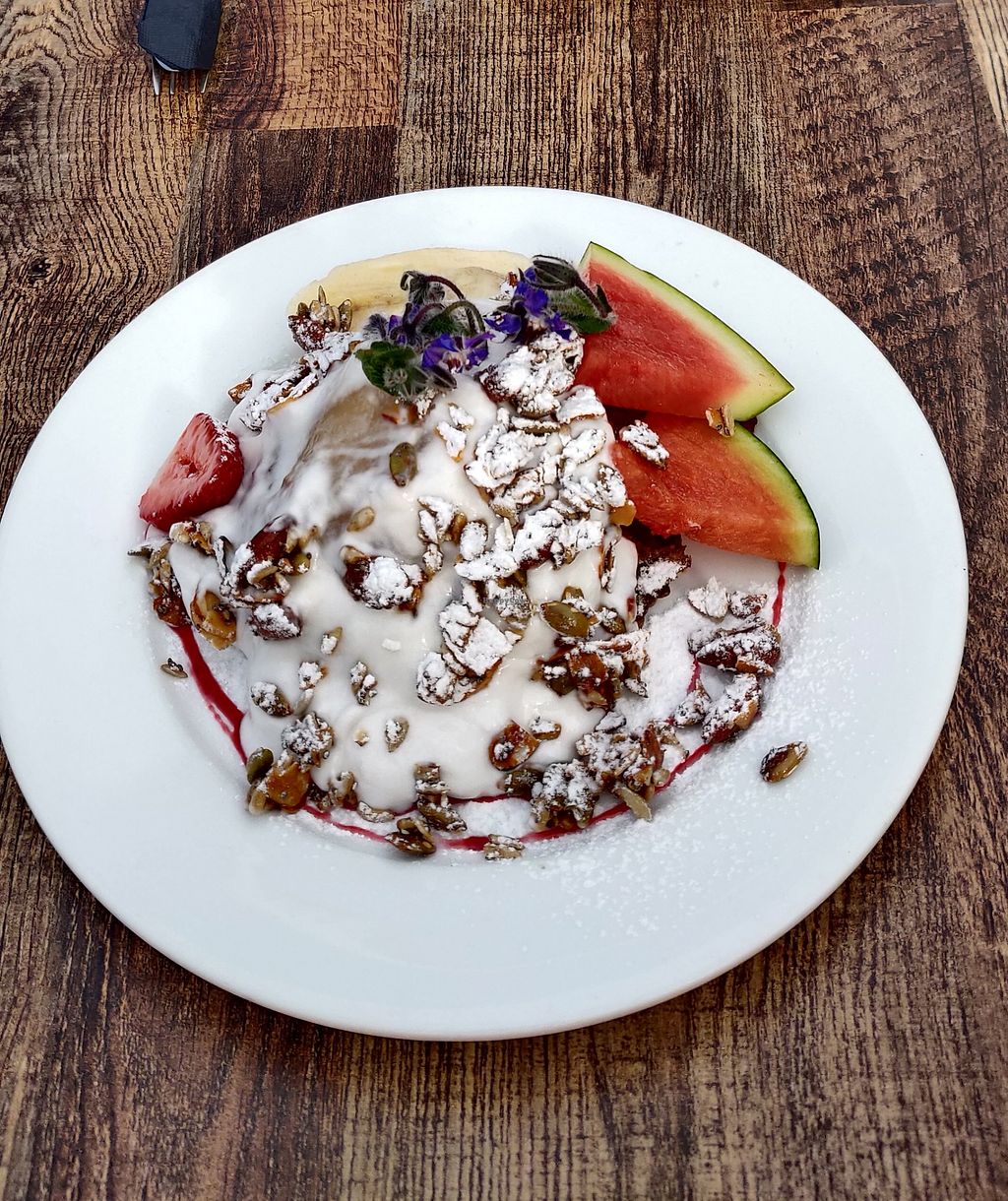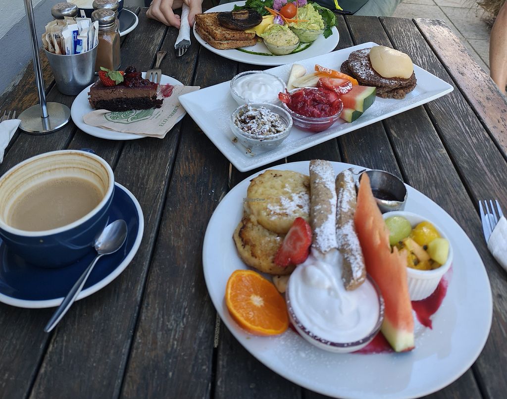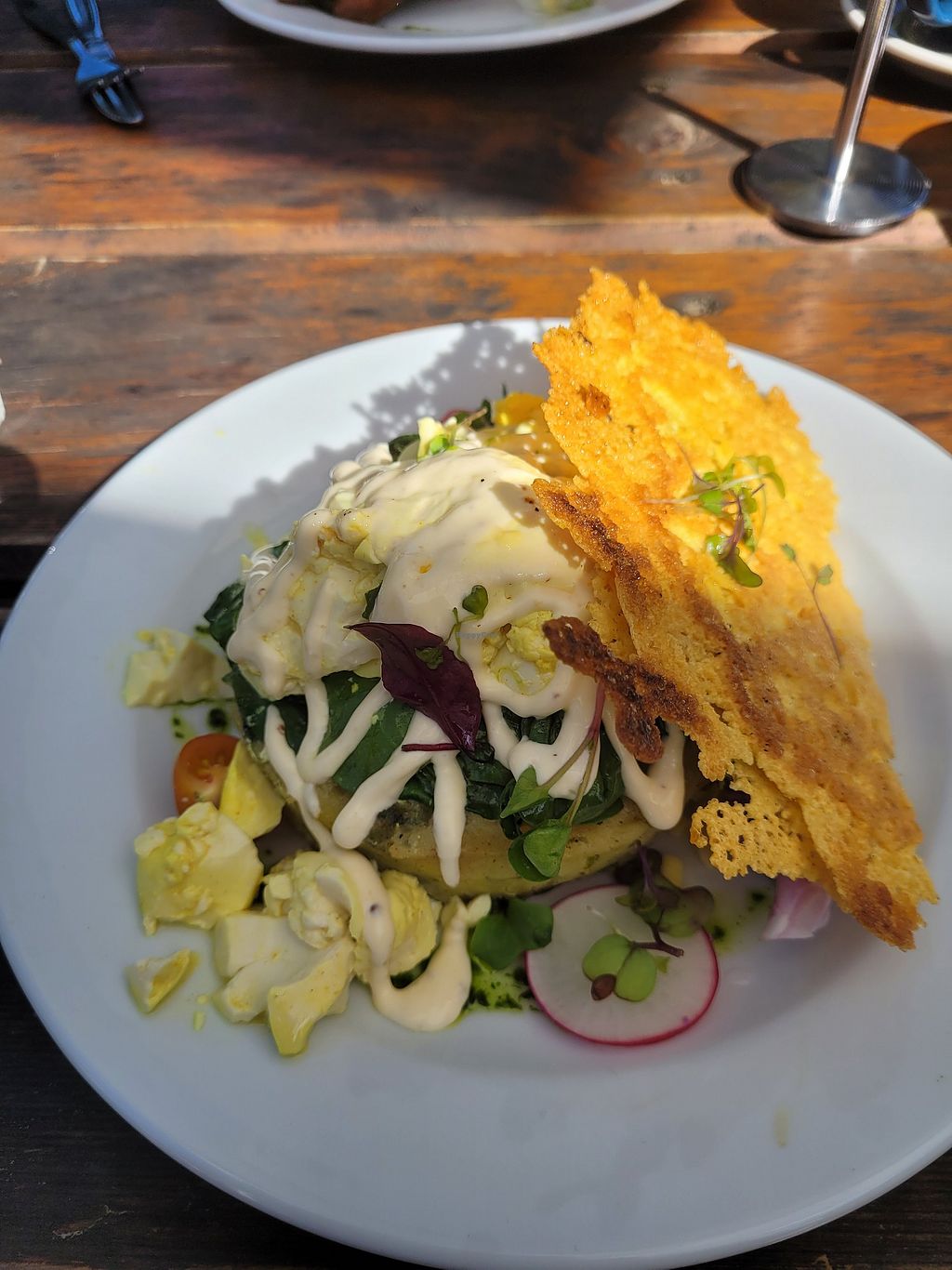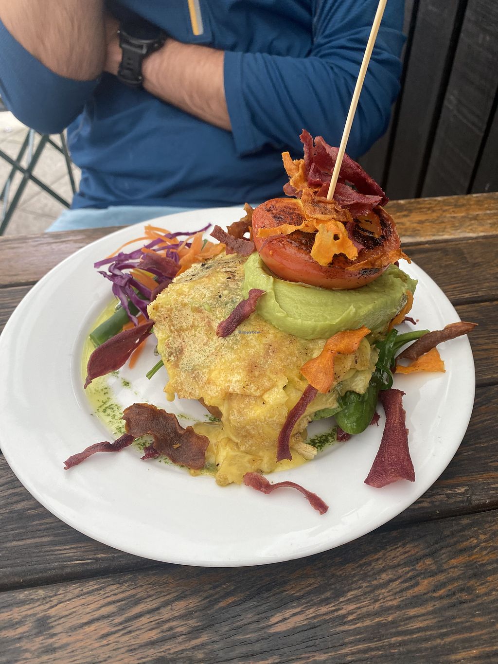 Corn cake with spinach, Avocado, tomatoes and vegan mozzarella