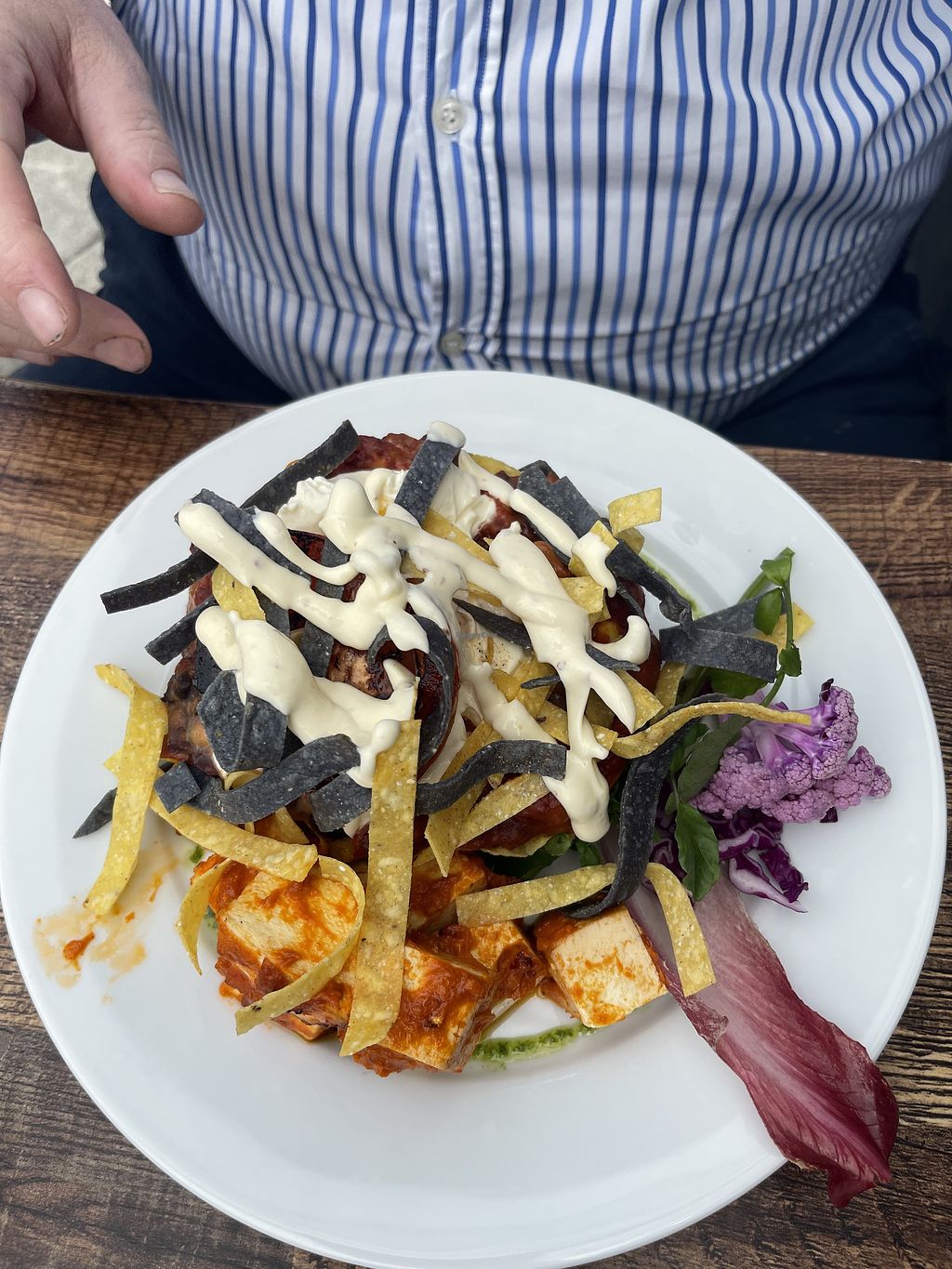 Warm ‘chicken’ salad (pricy at $34 but enough for two meals) #Veganua…