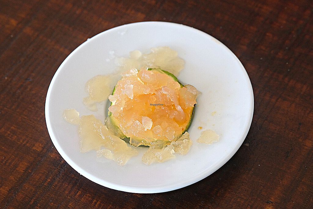 Two "molecular" spheres of Orange or Mint Liqueur. served in bed Vegan…