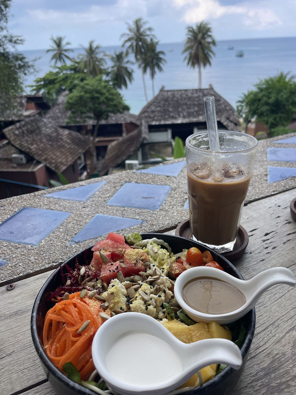 Lots of vegan options. Near main sairee beach but away from all the busyness and noise. Easy to get to, peaceful with a nice view and breeze.