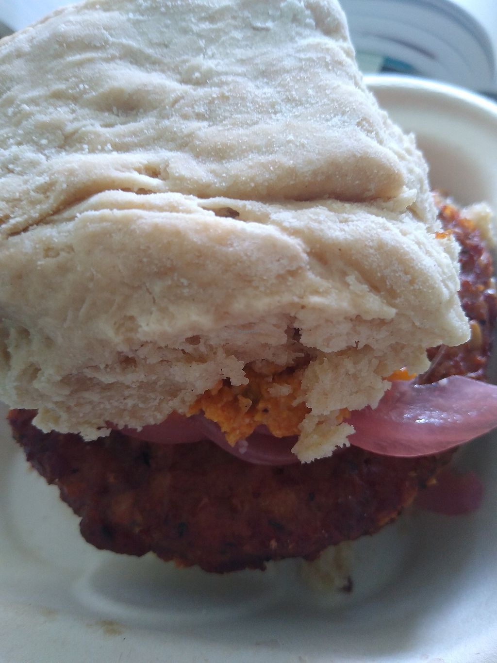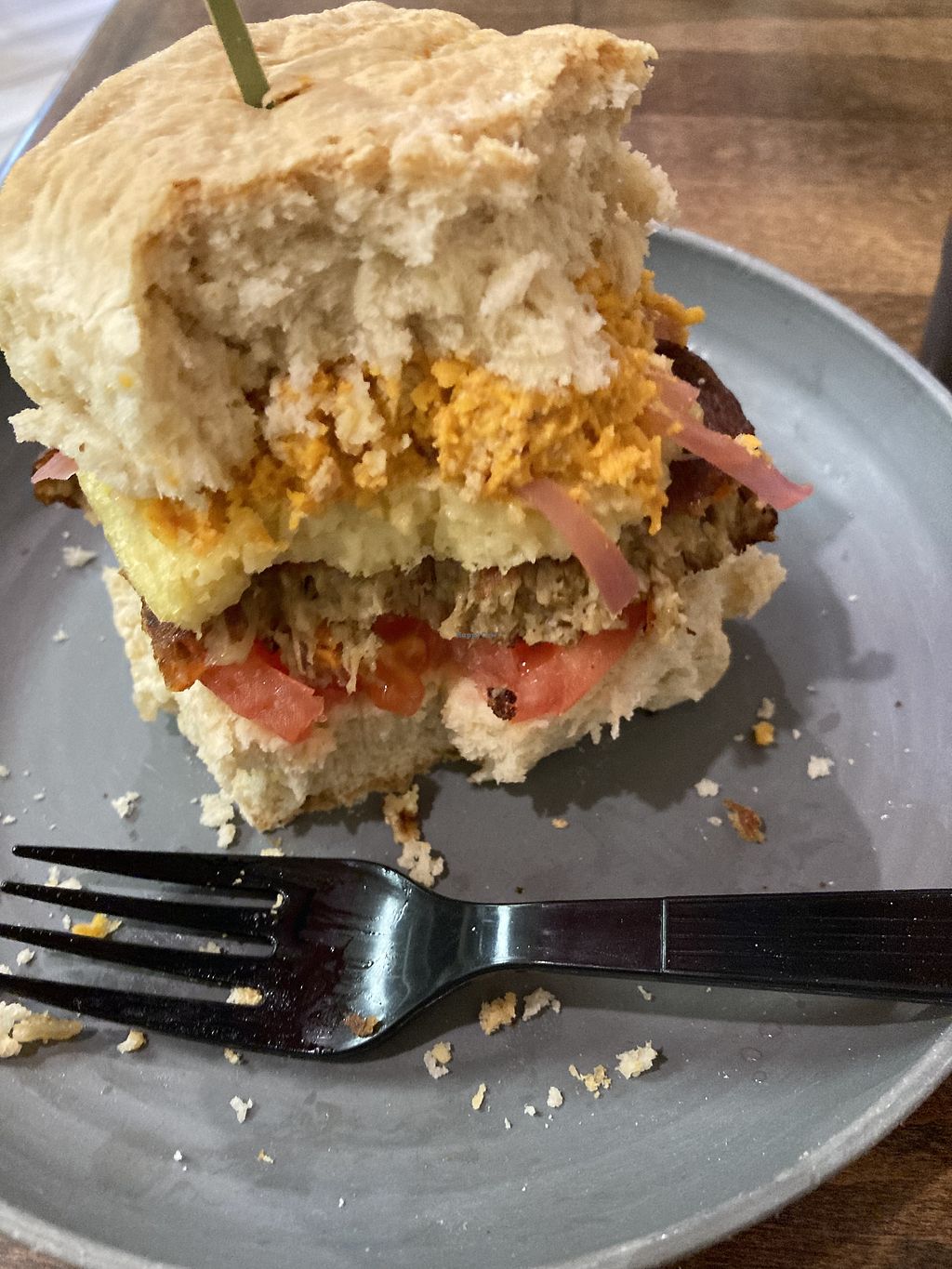 The biscuits are as good as I remember biscuits I had before going vegan. The vegan version of the Brekkie is as good as you could hope with Just Egg and vegan Gouda jack cheese(?!!). They also have vegan biscuits and gravy which I will try next time.