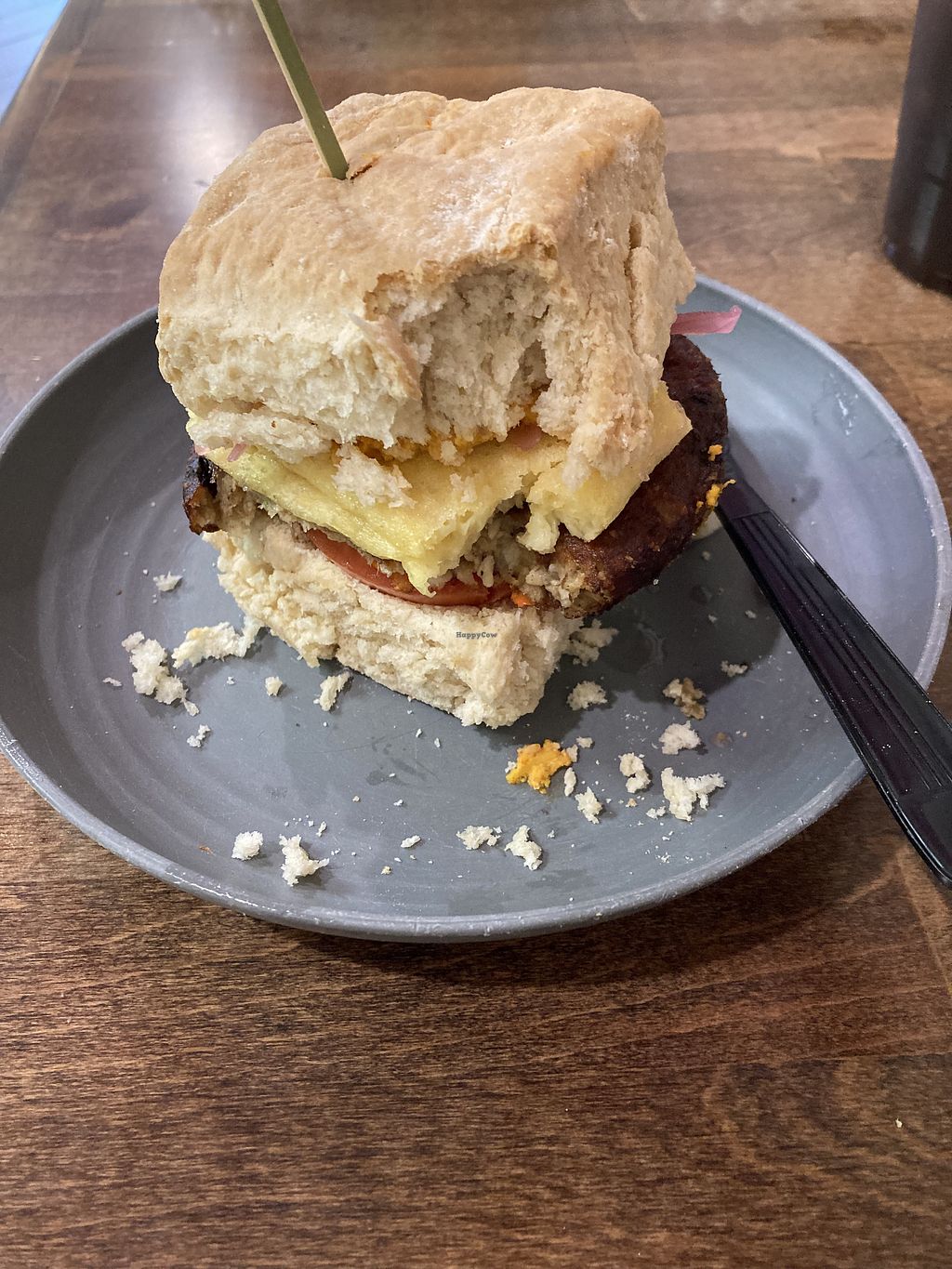 Got the vegan breakfast s biscuit and damn it was tasty- mainly because of the delicious veg Gouda! Biscuits themselves had a great flavor, were a smidge dry but the sandwich all together was good! If I lived in the area, I’d definitely be back for their other sandwiches and sweet options!