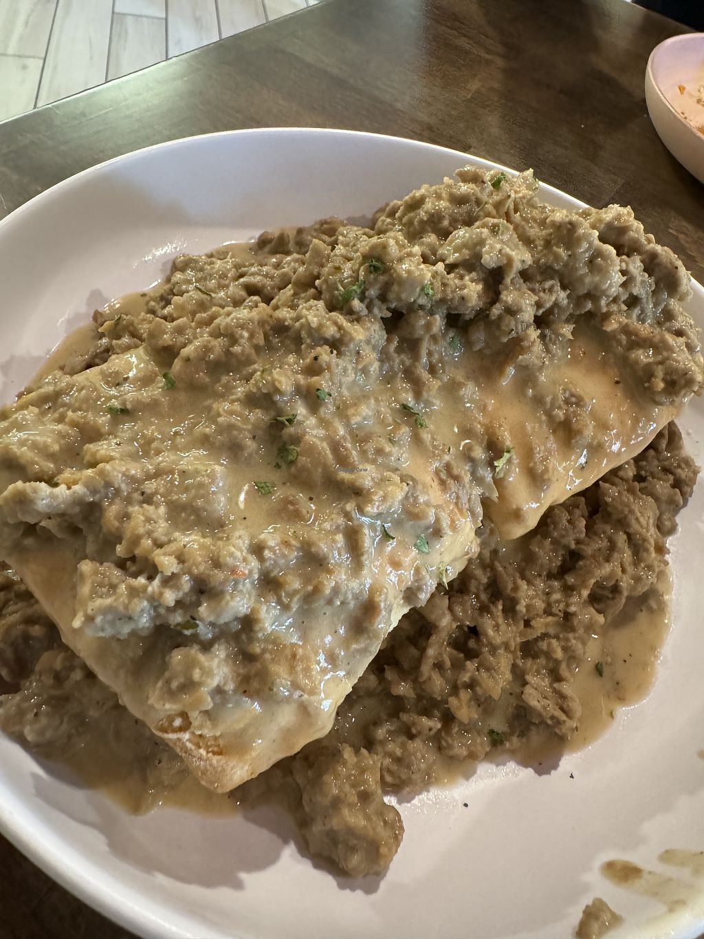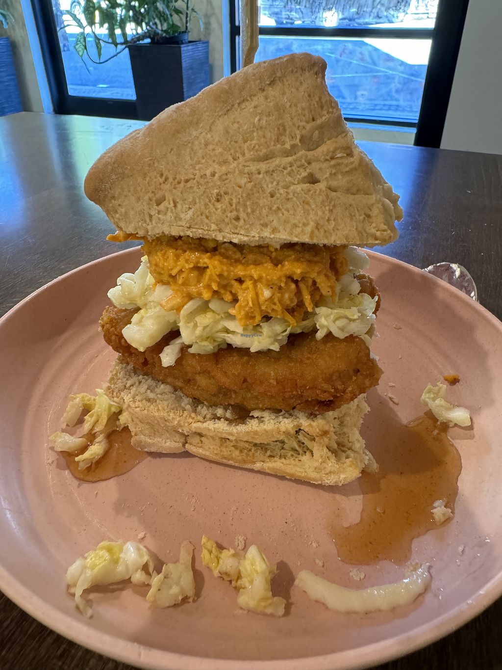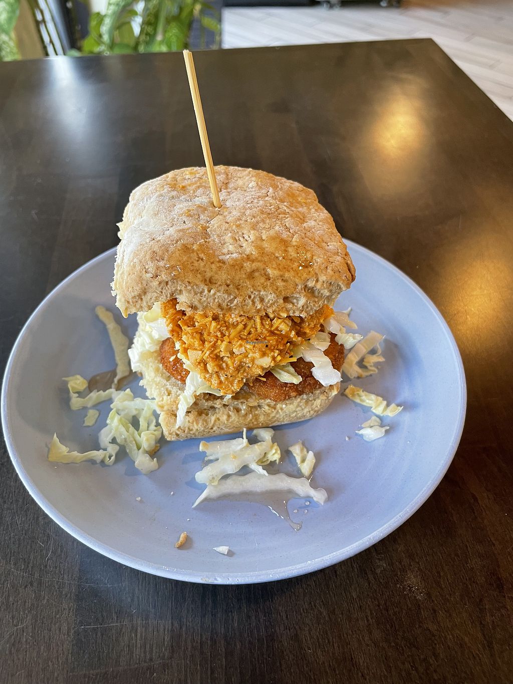 I really enjoyed the vegan chicken sandwich and the vegan egg sandwich. The vegan gravy was not my favorite and the biscuit was a little hard for my taste. I would get breakfast or brunch here again.
