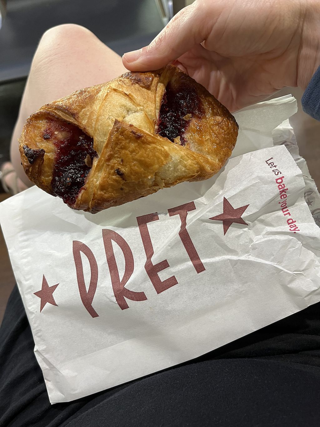 I wish they would offer more vegan pastries as no one would miss the dairy. Great berry croissant I often want to get at all the Prets I pass.