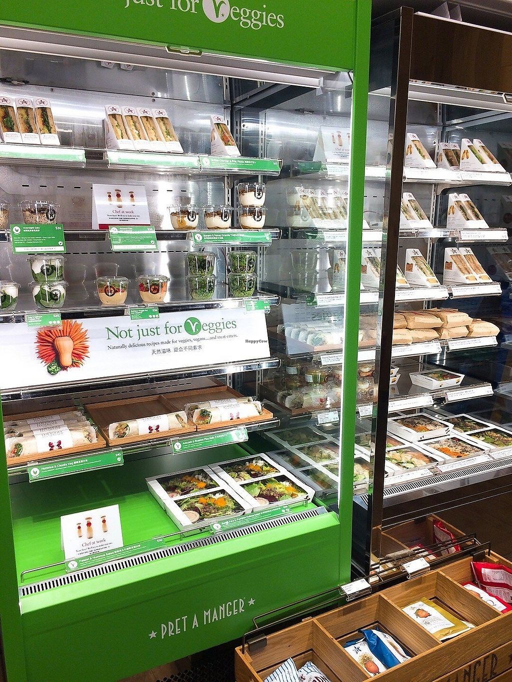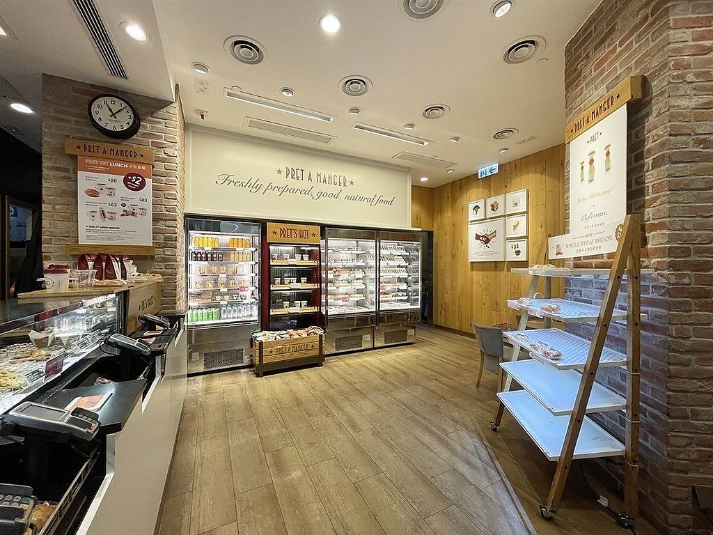 Serves meat, vegan options available. UK based international chain advertising natural food and organic coffee. Offers ready-to-eat prepackaged foods and drinks, including items like smoothies, bottled juices, porridge, coconut milk yogurt with granola, falafel and hummus salad, fruit salad, baguette sandwiches, wraps, and soups. Vegan items labeled. Est. 1983 and commonly referred to as just Pret. Reported closed May 2024.