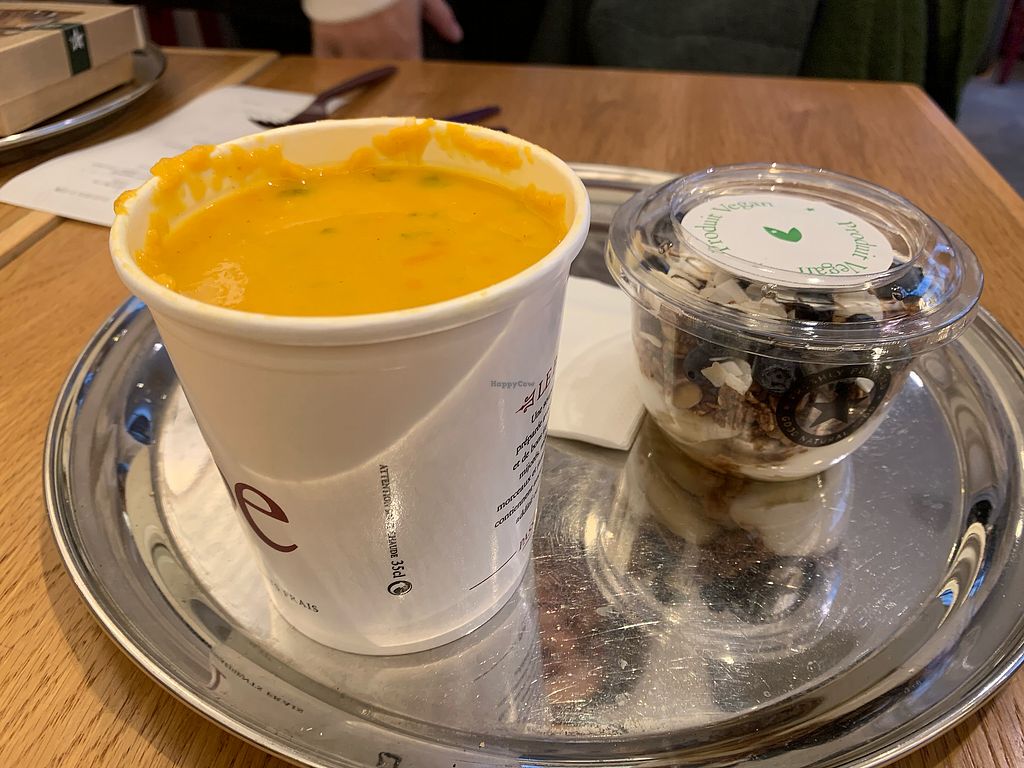 As in other Pret-a-manger branches, there are vegan-labeled snacks like sandwiches, soups and salads. No vegan desserts yet, except from a fruit salad.