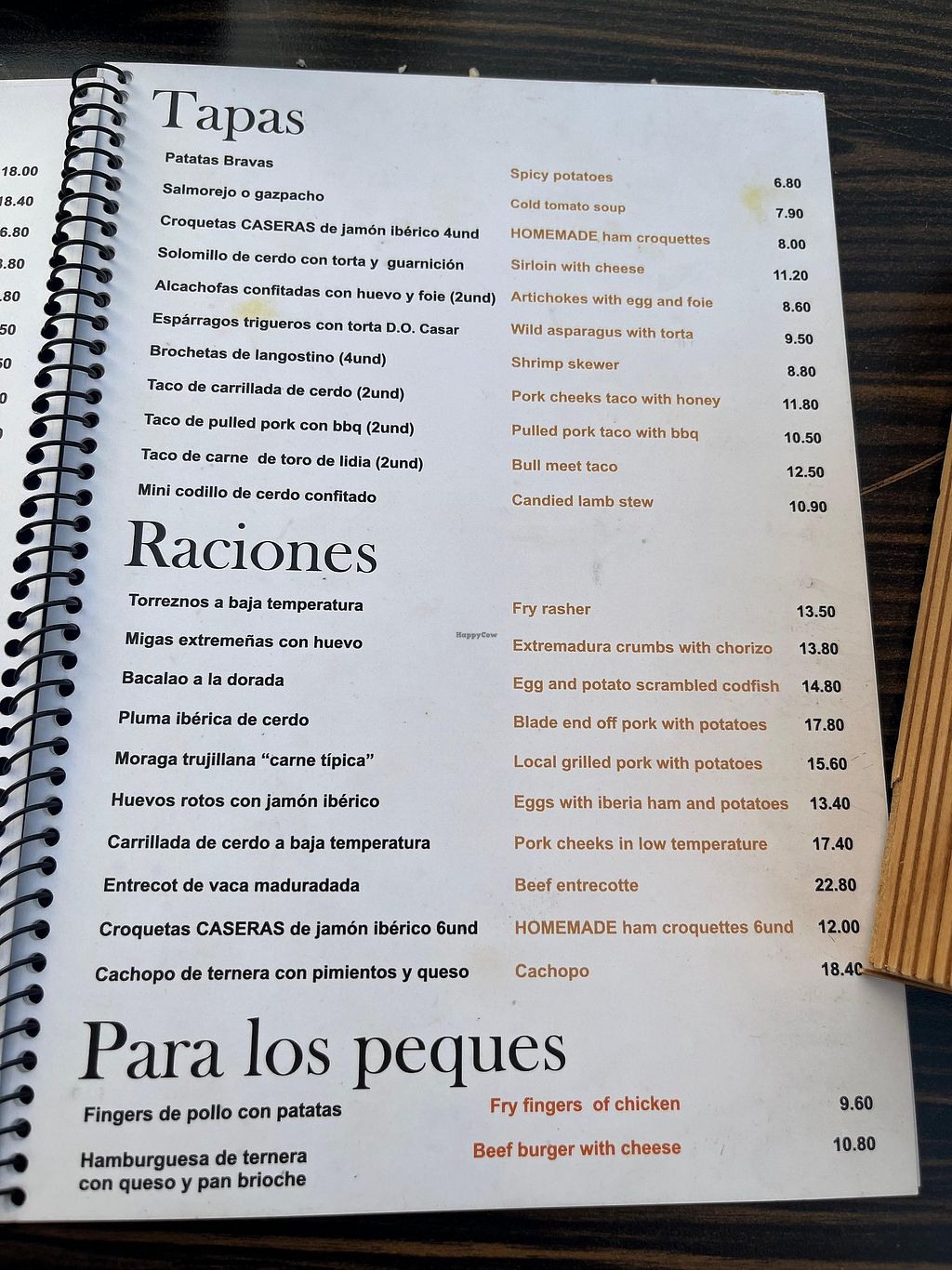 Carta con opción vegana la burger