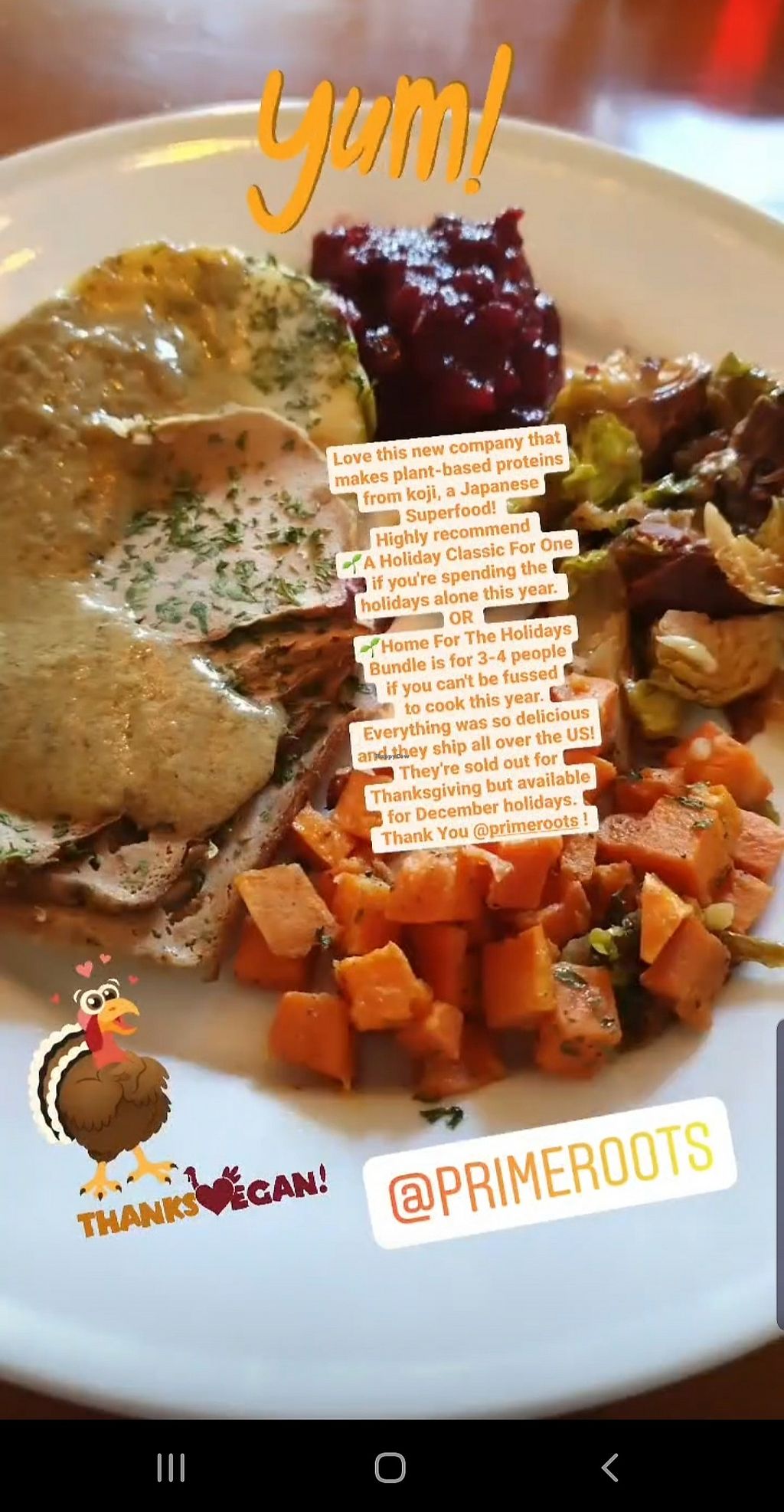 Prime Roots Thanksgiving meal, turkey from koji