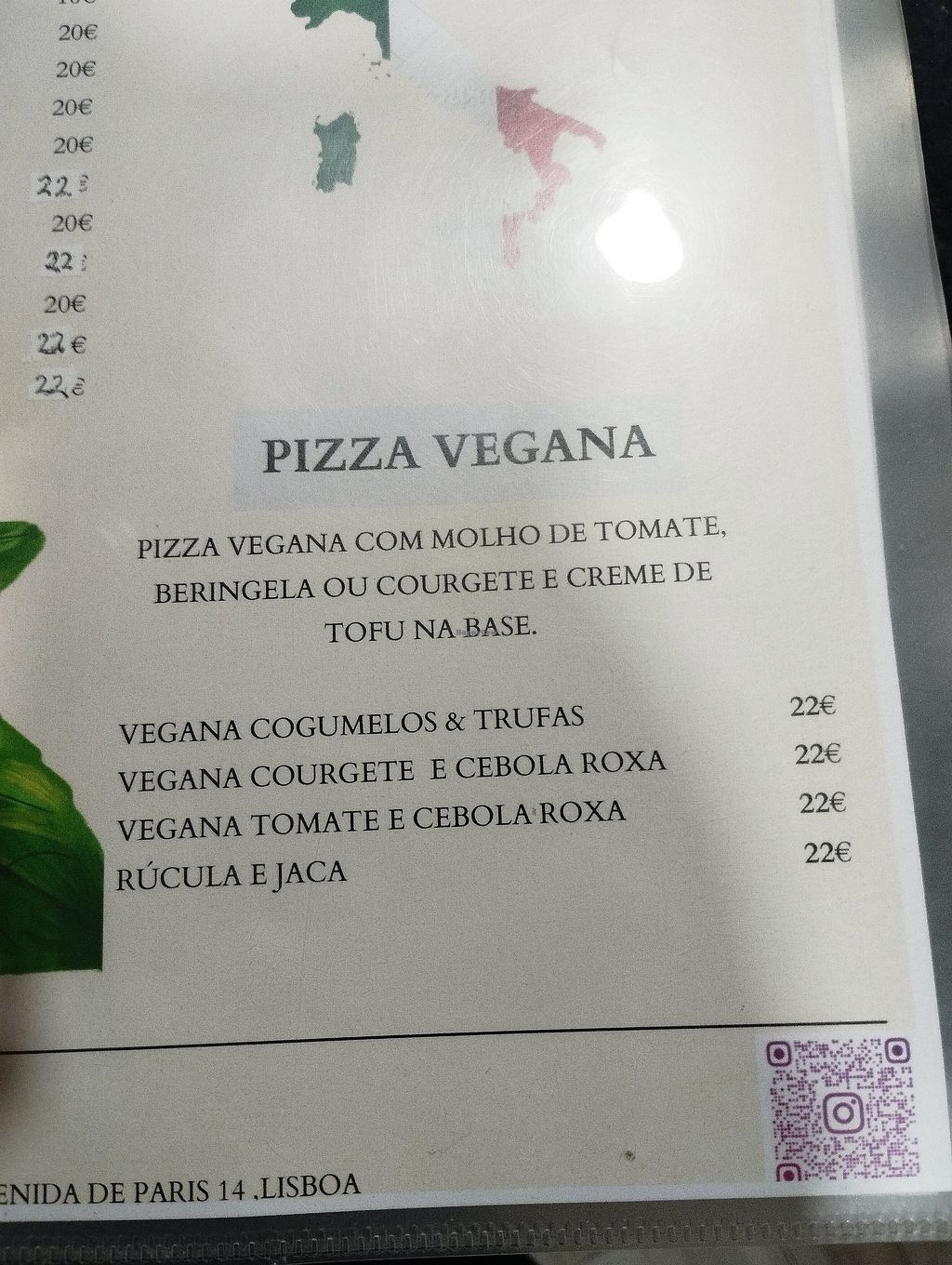 Serves meat, vegan options available. Takeaway Italian pizza shop with vegan choices, including tofu tartiflette and roast vegetable pesto pizza - pay by the slice or half slice. Take-out only. Relocated from Rua dos Remedios 37. Open Tue-Sun 18:00-22:00.