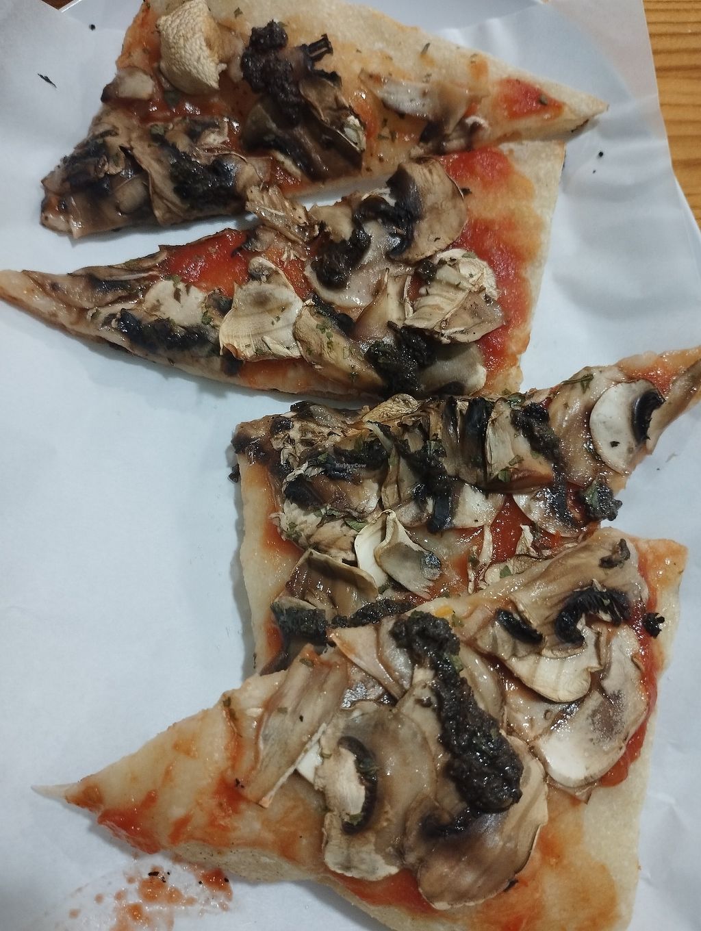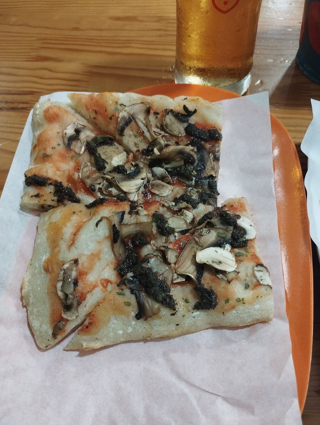 Too bad I can’t give 5 stars, because I would. What the other pizza place lacked, this one had and more. I ate a slice with truffle cream, mushrooms and aubergine and an olive Focaccia, my friend had a meaty slice. It was some of the best pizza we ever had!