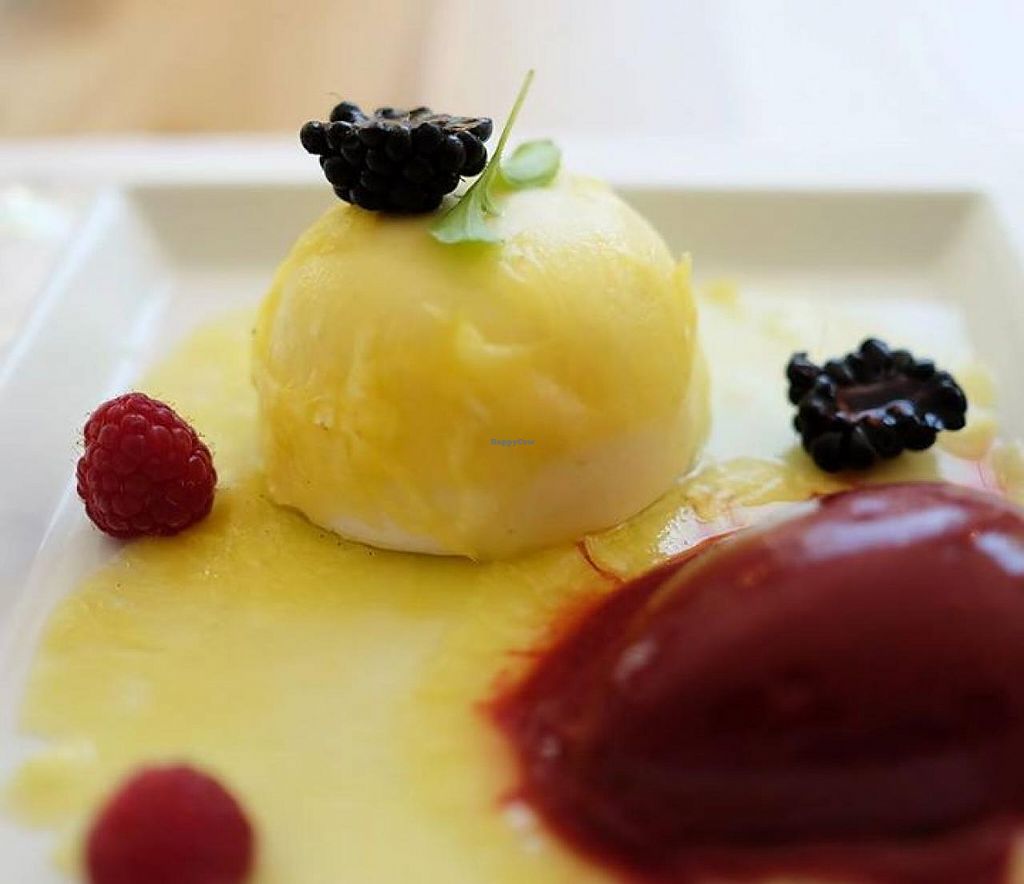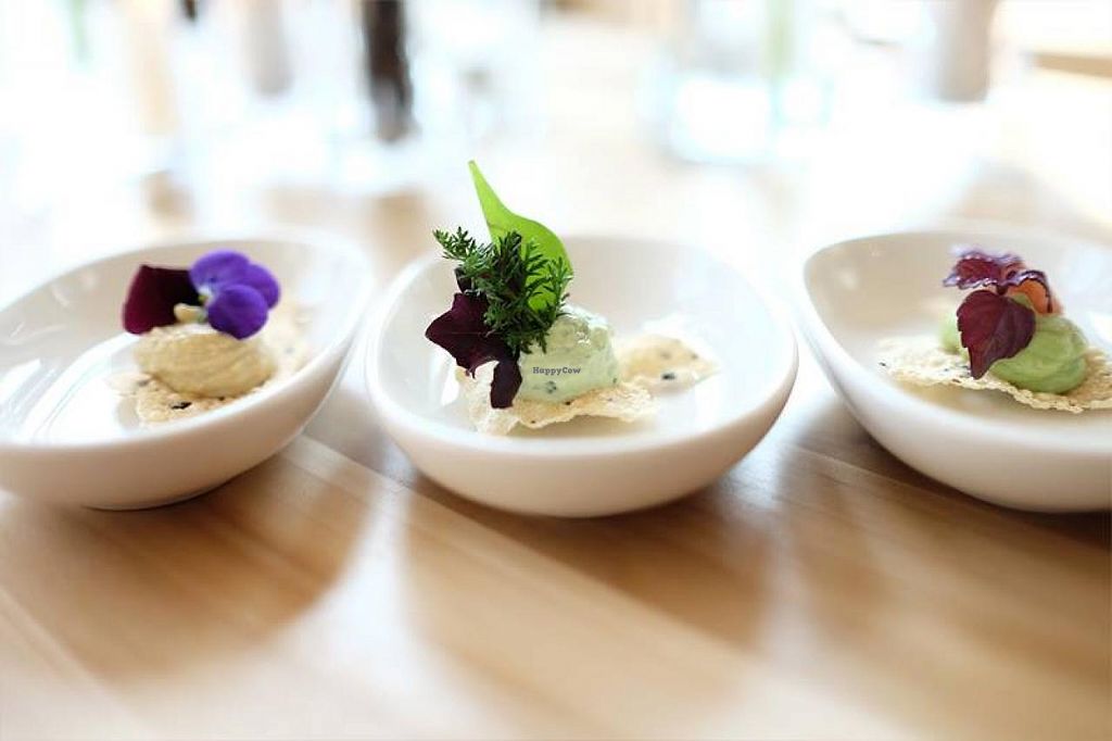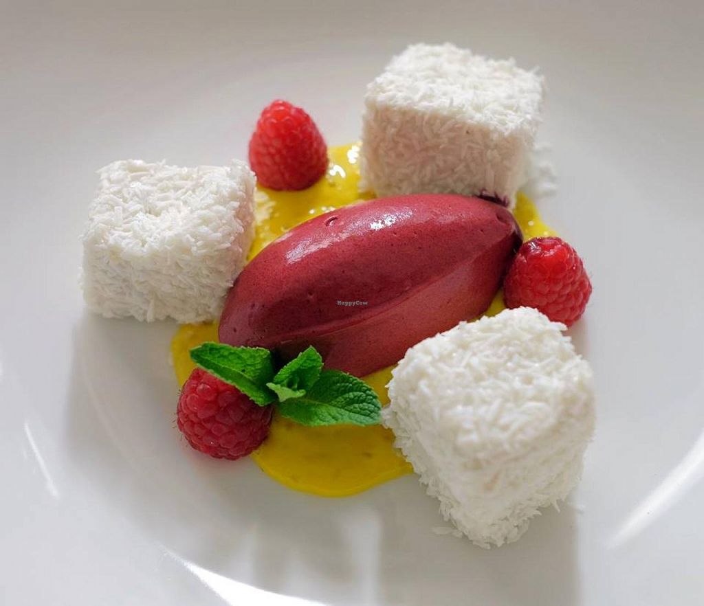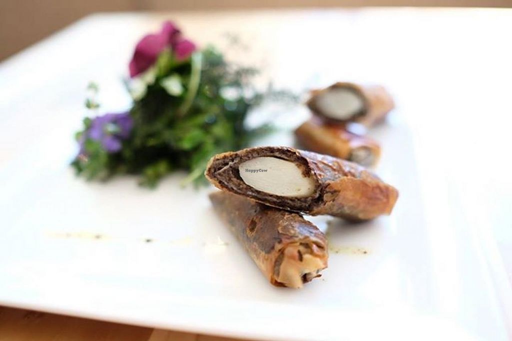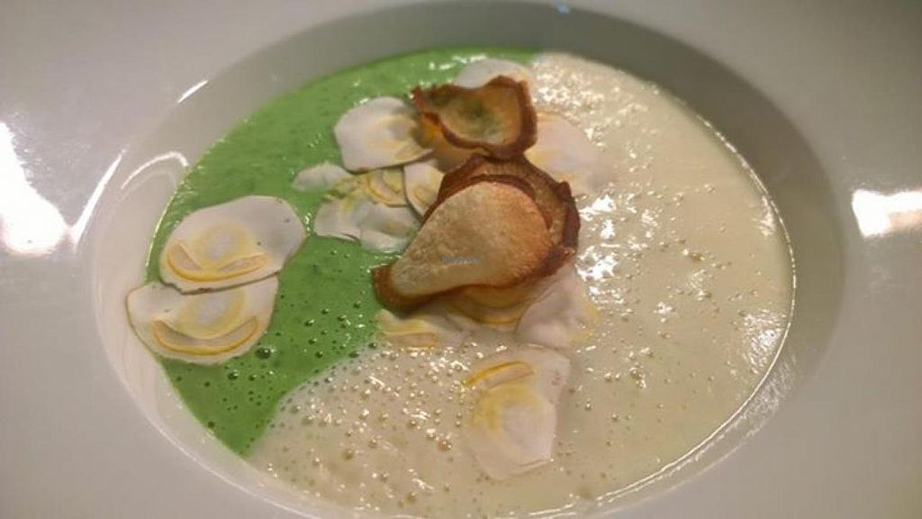 We had a beautiful dinner outside in the garden. The seitan steak with navette puree was delicious and also the fettuccine with asparagus. The dessert ( coconut pralines with exotic salad) was not very creative and not so big but good.
