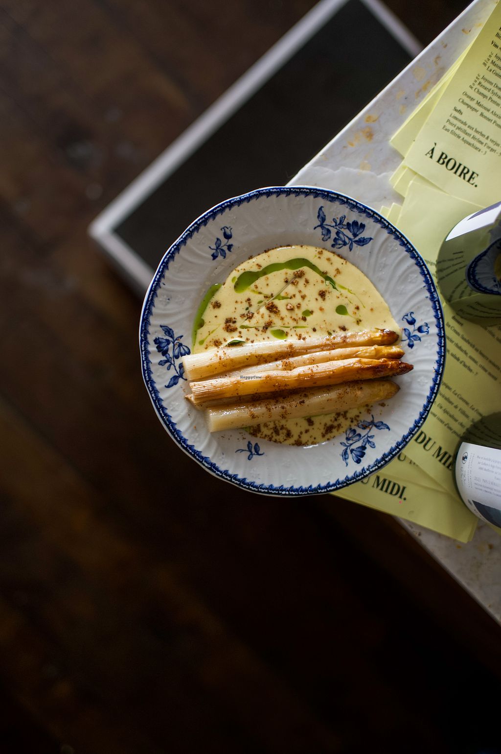 Vegetarian fine dining restaurant offering vegan options. The menu includes vegan dishes such as vegetable pickles with fig leaf cream, oyster mushroom tempura with plum ketchup, braised sucrine (a lettuce variety) with fennel and virgin sauce, and carrot ceviche with seaweed and leche de tigre (a citrus-based marinade). Other vegan items are smoked eggplant with mole sauce and a steamed bun stuffed with onions and green pepper. Open Mon-Sat 12:00-14:00, 19:00-23:00. Closed on sundays