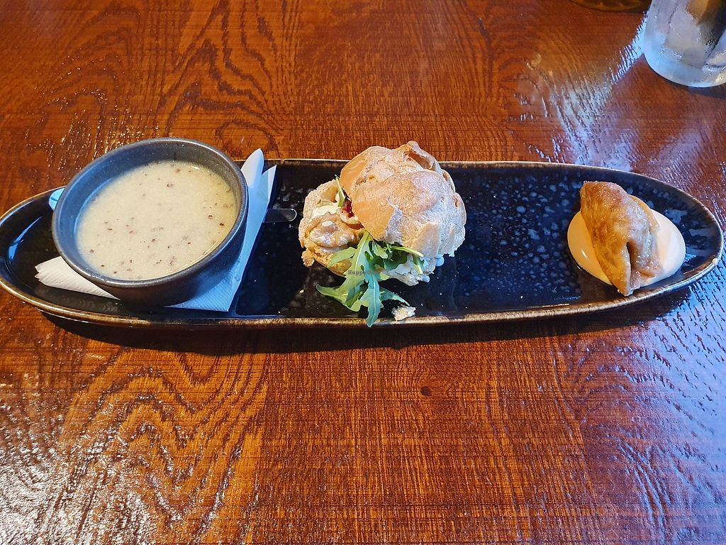 Read moreVegan voorgerecht (soep) bleek een broodje met melk te bevatten. Hoofdgerecht (flamkuchen) was eerst vega gemaakt en daarna wel Vegan door ingrediënten weg te laten. Daardoor miste de smaakbalans.