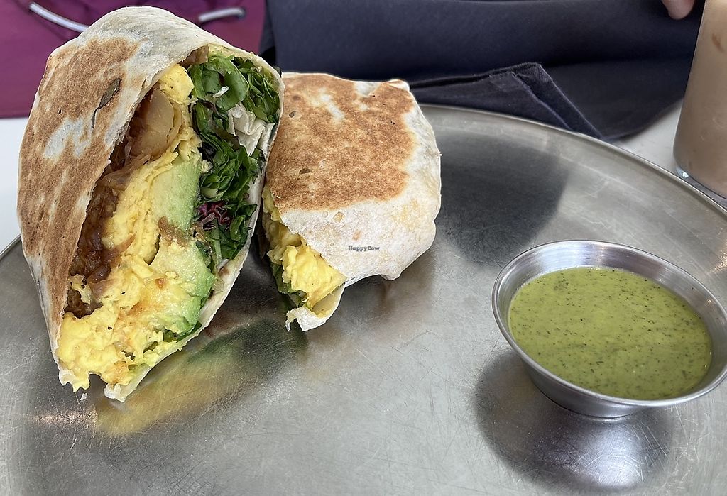 Read moreCame here for brunch one morning new to the area as a Vegan and was SO excited to see the All Day Breakfast Burrito option. It was so good I ate it all! The sauce was super yummy!!