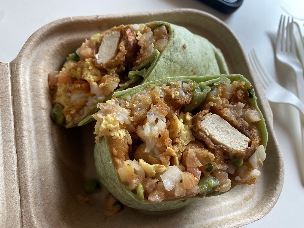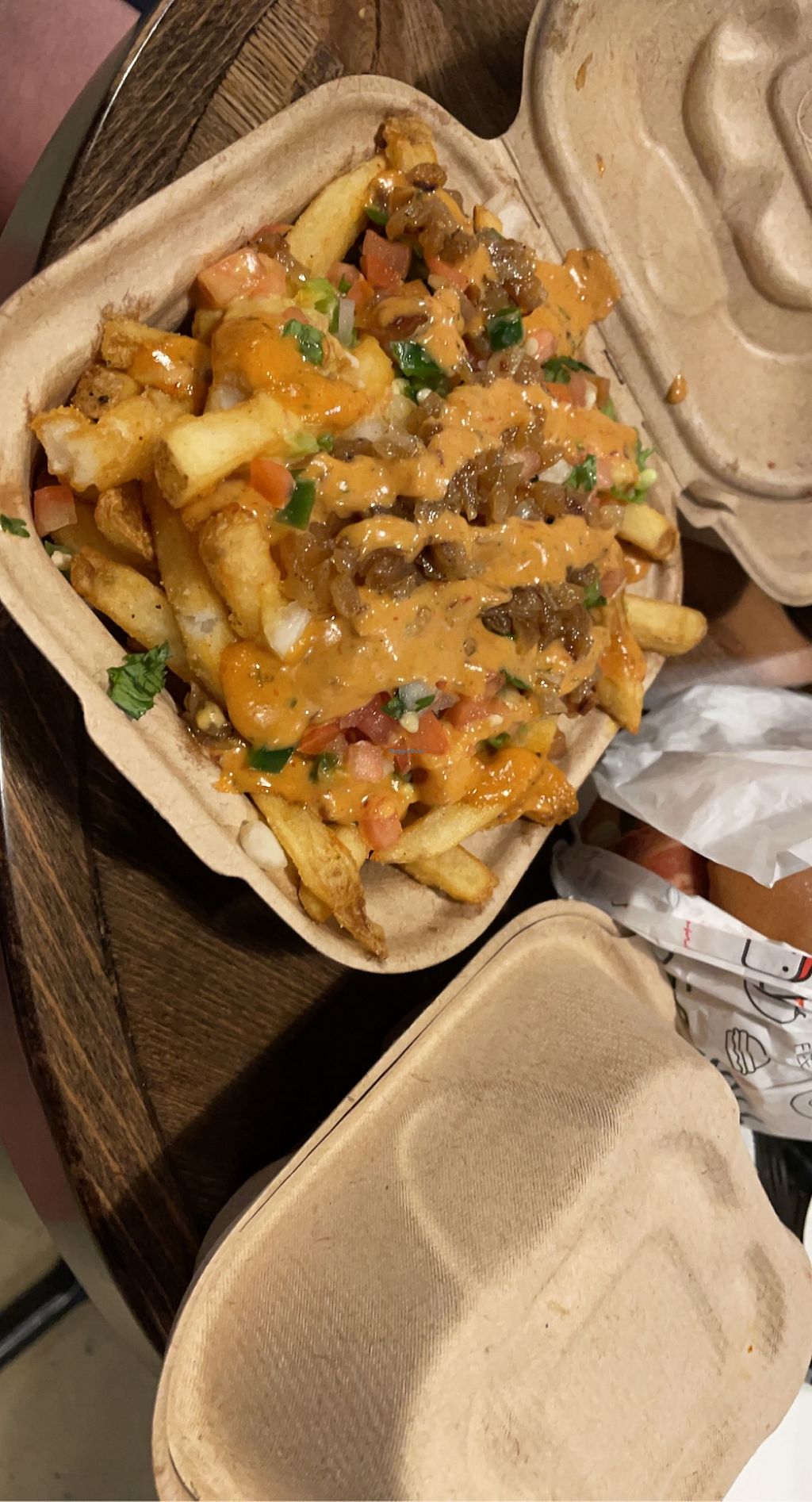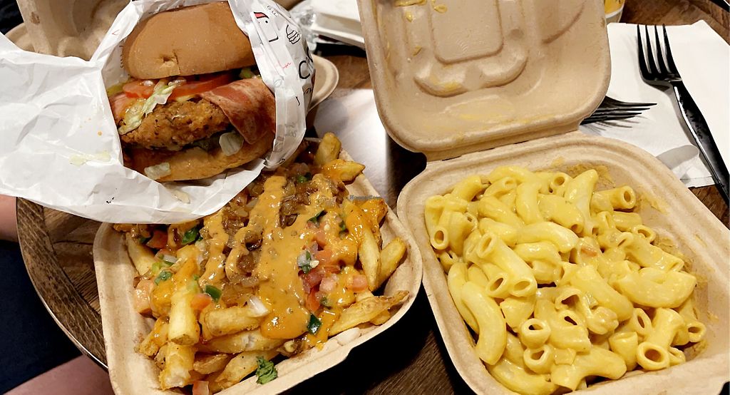 Original project chik’n sandwich, loaded tater tots, and cookies-n-cre…